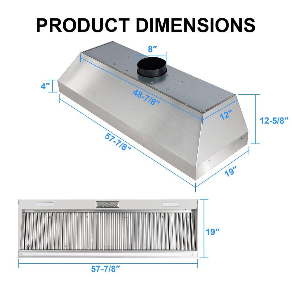 Akicon Akicon 60 in. 1200 CFM Ducted Stainless Steel Range Hood Insert with 4-Speed, 3 CCT LED Light and Heat Sensor Auto Speed