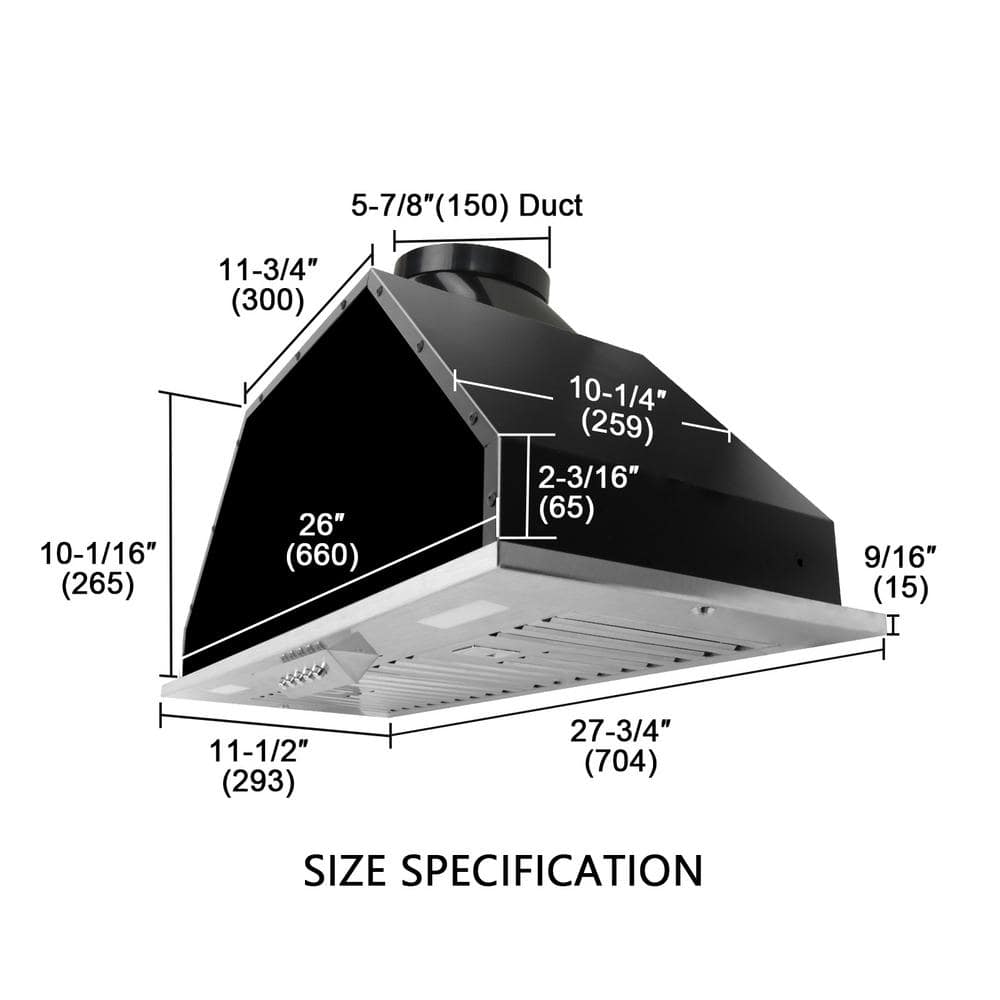 Range Hood Insert/Built-in 30 in., Stainless Steel. Kitchen Vent Hood with Lights and Dishwasher Safe Filters. With 3-Speeds 600 CFM.