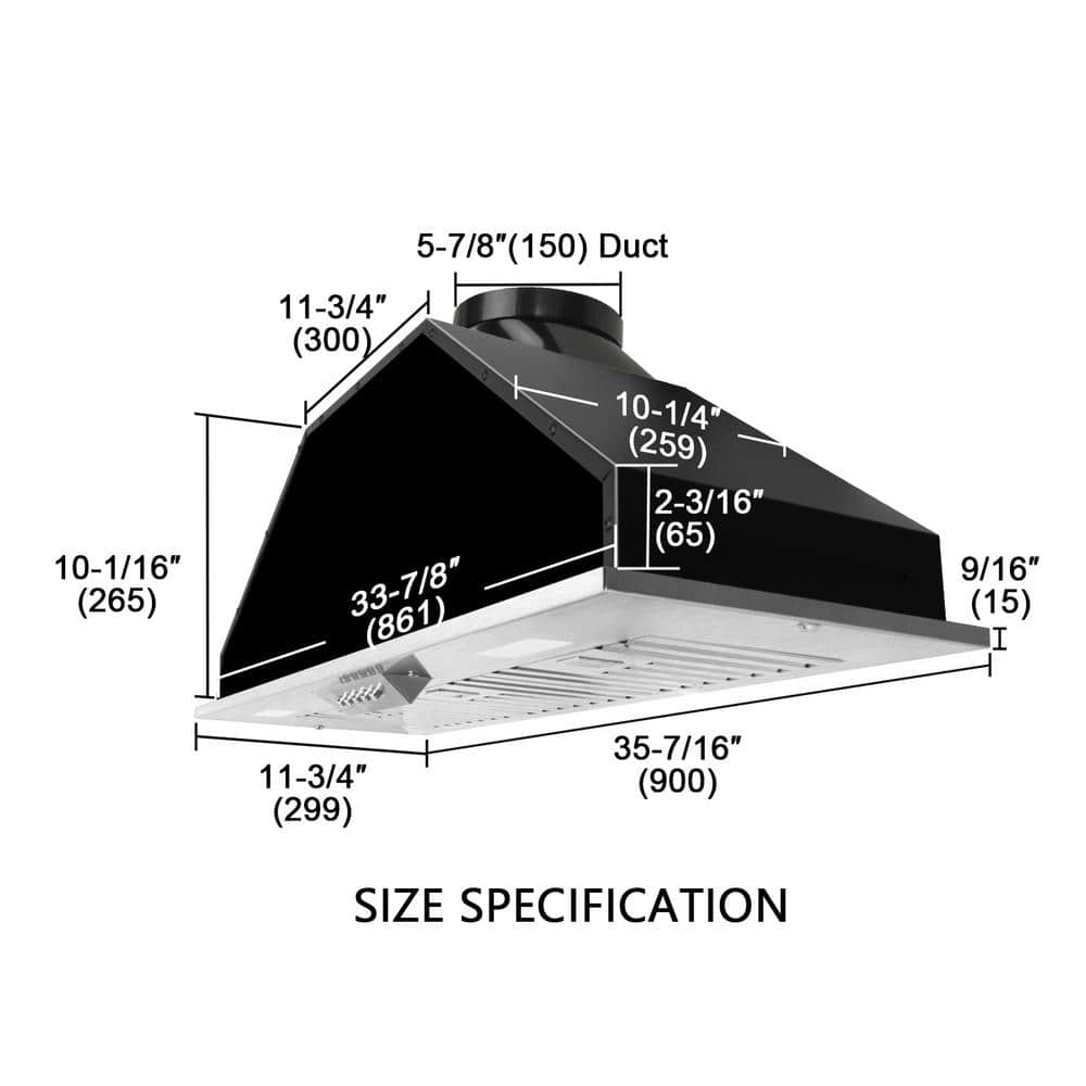 Range Hood Insert/Built-in 36 in., Stainless Steel. Kitchen Vent Hood with Lights and Dishwasher Safe Filters. With 3-Speeds 600 CFM.