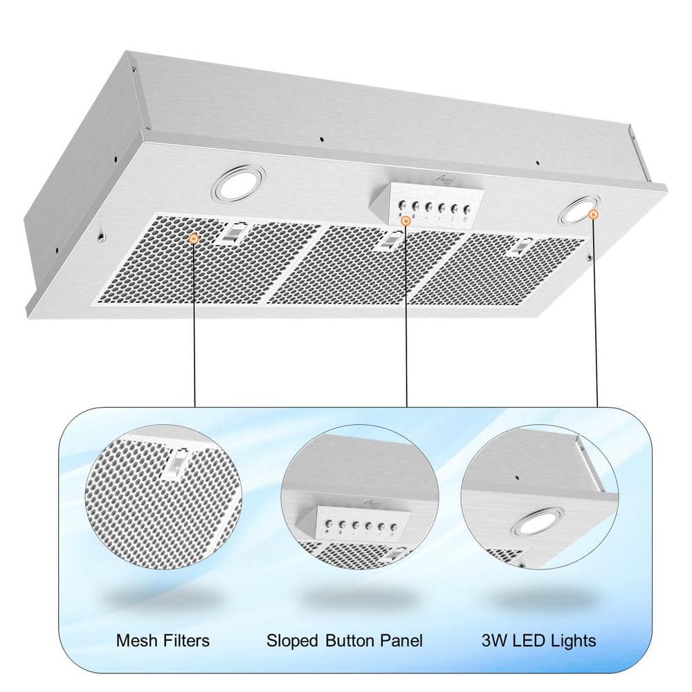 HGUOQ 30 in. 400CFM Convertible Ductless to Ducted Insert Range Hood in Stainless Steel with LED Lights and Washable Filter