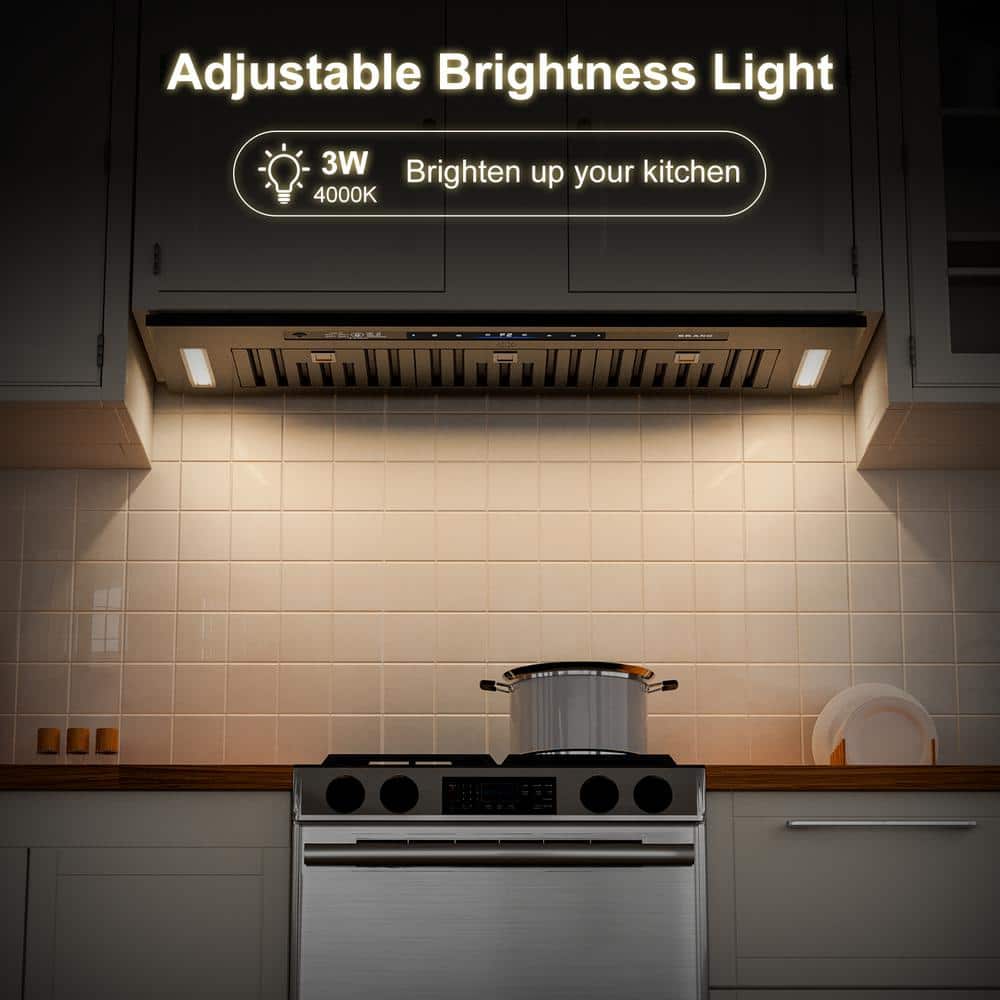 HGUOQ 30 in. 400CFM Convertible Ductless to Ducted Insert Range Hood in Stainless Steel with LED Lights and Washable Filter