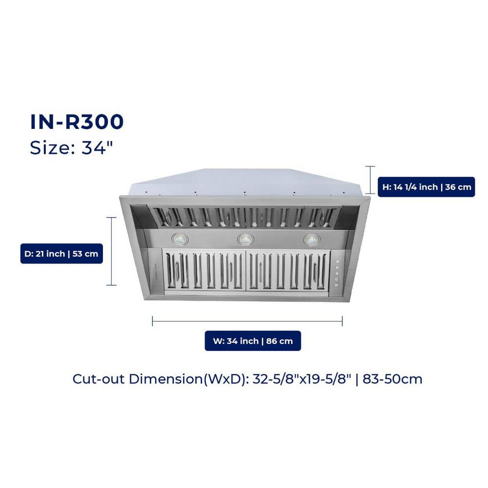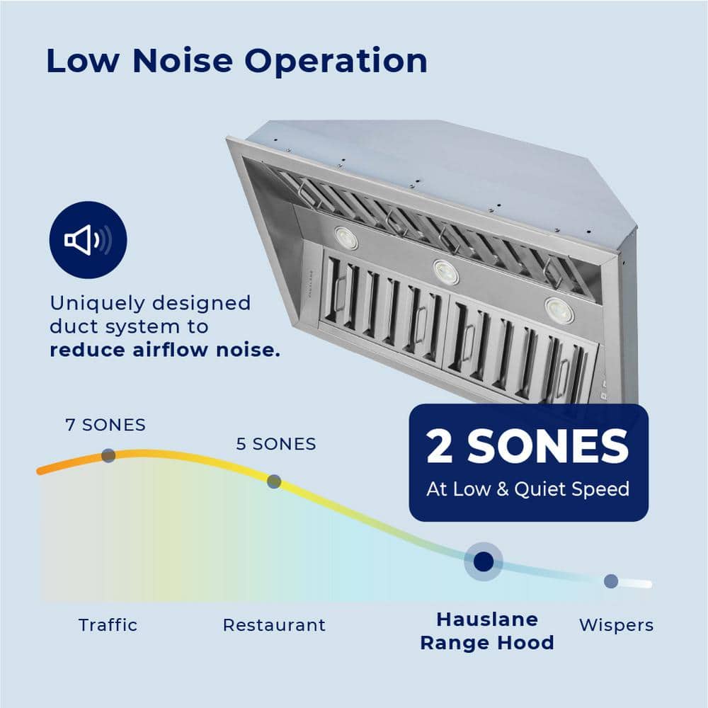HAUSLANE Pro-Style 34 in. 500 CFM Insert Range Hood (21 in. Deep) Convertible with Low Noise Operation in Stainless Steel