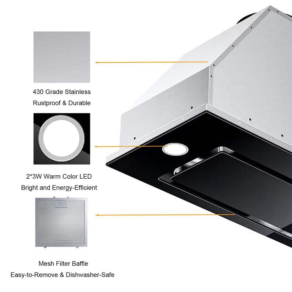 INATECK 30 in. 900 CFM Convertible Insert Range Hood in Stainless Steel 4-Speed with LED, Touch and Gesture Control with Remote
