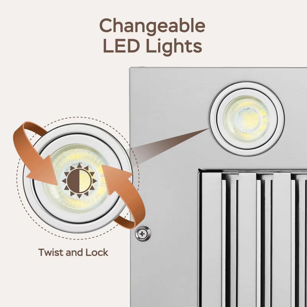 HGUOQ 30 in. 400CFM Convertible Ductless to Ducted Insert Range Hood in Stainless Steel with LED Lights and Washable Filter