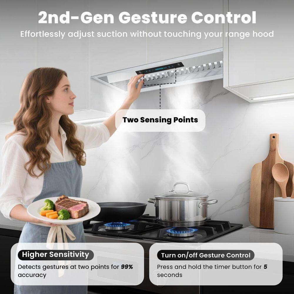 INATECK 30 in. 900 CFM Convertible Insert Range Hood in Stainless Steel 4-Speed with LED, Touch and Gesture Control with Remote