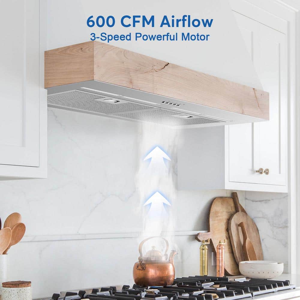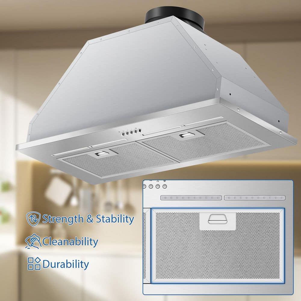 INATECK 30 in. 900 CFM Convertible Insert Range Hood in Stainless Steel 4-Speed with LED, Touch and Gesture Control with Remote