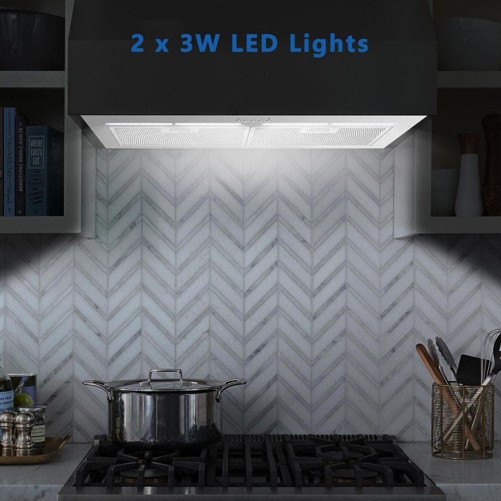 Winflo 34 in. 600 CFM Ducted Insert/Built-in Range Hood in Stainless Steel with Baffle Filters LED Lights