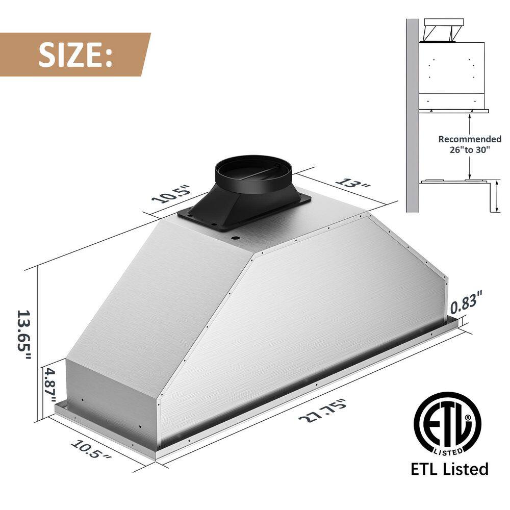 INATECK 30 in. 900 CFM Convertible Insert Range Hood in Stainless Steel 4-Speed with LED, Touch and Gesture Control with Remote