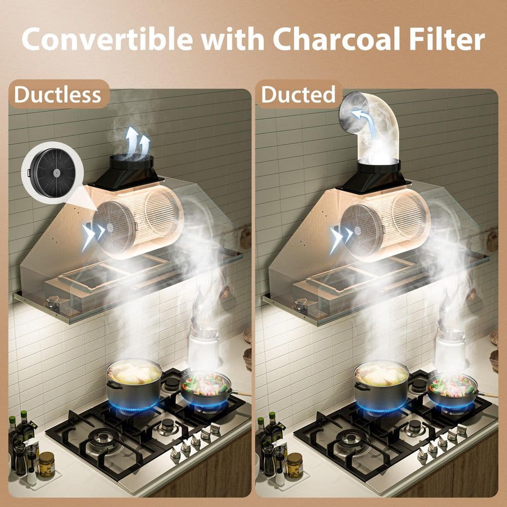 INATECK 30 in. 900 CFM Convertible Insert Range Hood in Stainless Steel 4-Speed with LED, Touch and Gesture Control with Remote