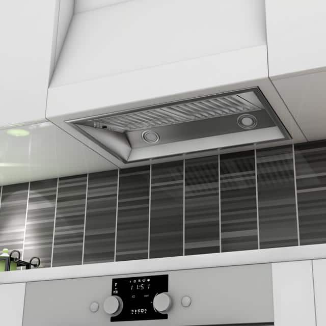 The ZLINE 698-28 is a 28 in. stainless steel range hood insert with a modern design and built-to-last quality, making it a great addition to any kitchen. This hood's high-performance, 400 CFM 4-speed motor will provide all the power you need to quietly and efficiently ventilate your stove while cooking. With its classic 430 grade stainless steel, this range hood contains rust, temperature, and corrosion-resistant properties to ensure a durable vent hood that will last for years to come. Enjoy modern features, including built-in LED lighting for an illuminated culinary experience and dishwasher-safe stainless steel baffle filters for easy clean-up. This range hood insert has a ducted vent with easy, simple installation. Experience Attainable Luxury in the heart of your home, with a ZLINE range hood. ZLINE Kitchen and Bath stands by all products with its manufacturer parts warranty. The 698-28 ships next business day when in stock.
