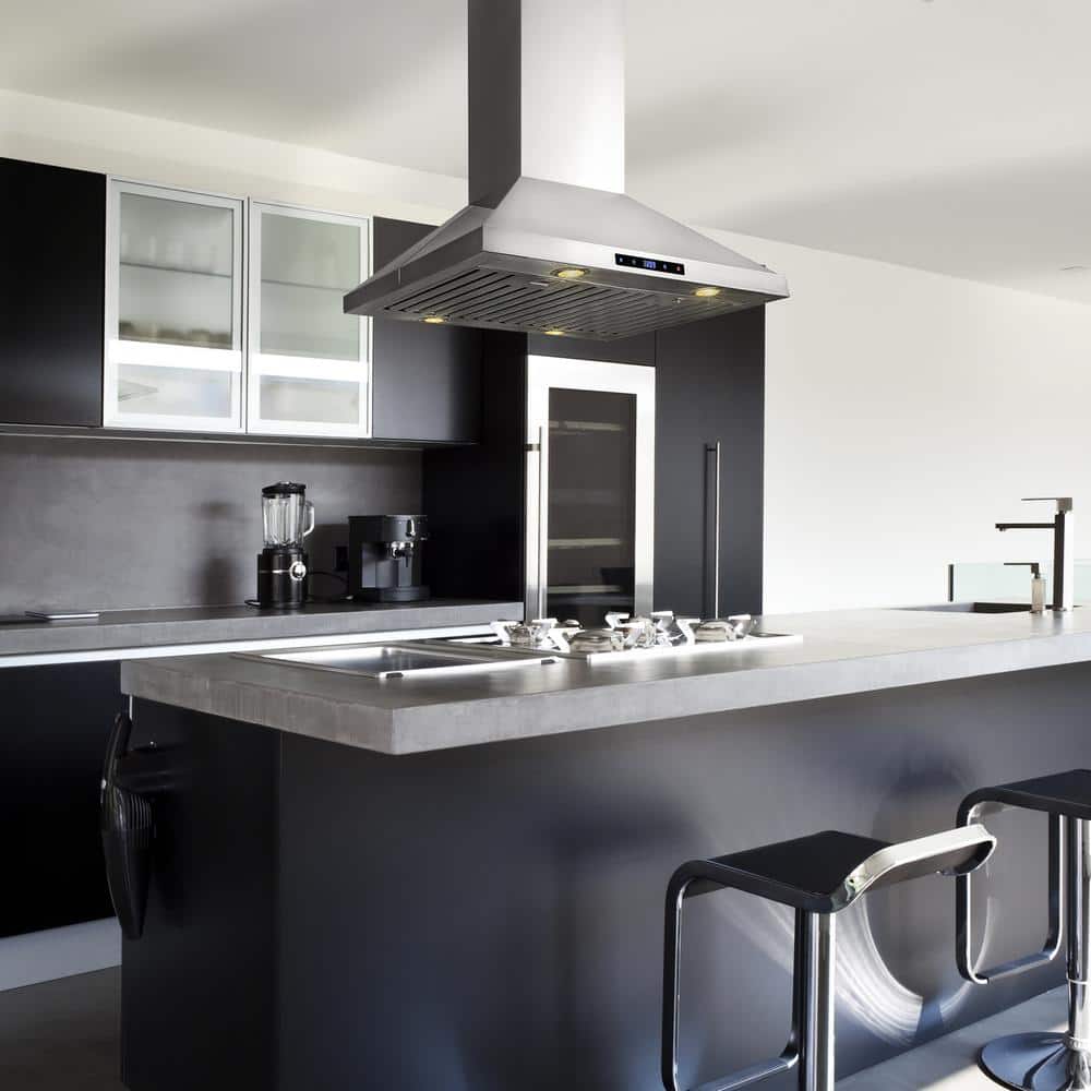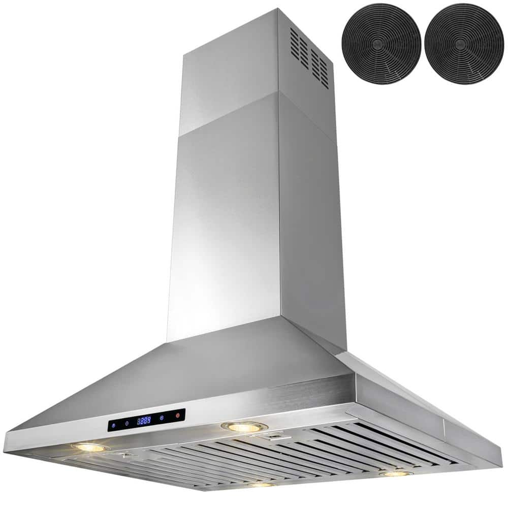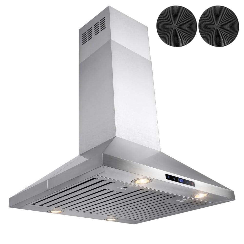 AKDY 30 in. Convertible Kitchen Island Mount Range Hood in Stainless Steel with Touch Control and Carbon Filter