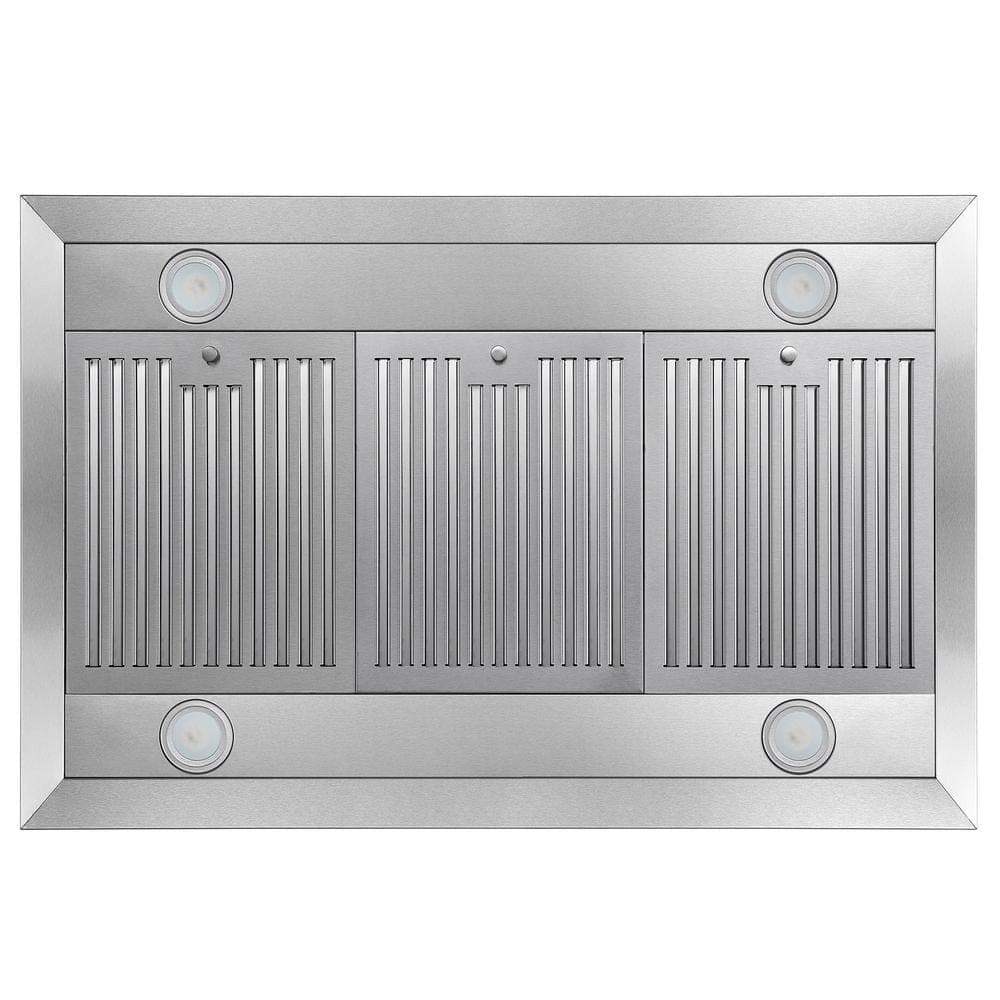 Unbranded 36 in 900CFM Ducted Insert Range Hood in Sliver Stainless Steel Island Mount Range Hood Tempered Glass LED Lights