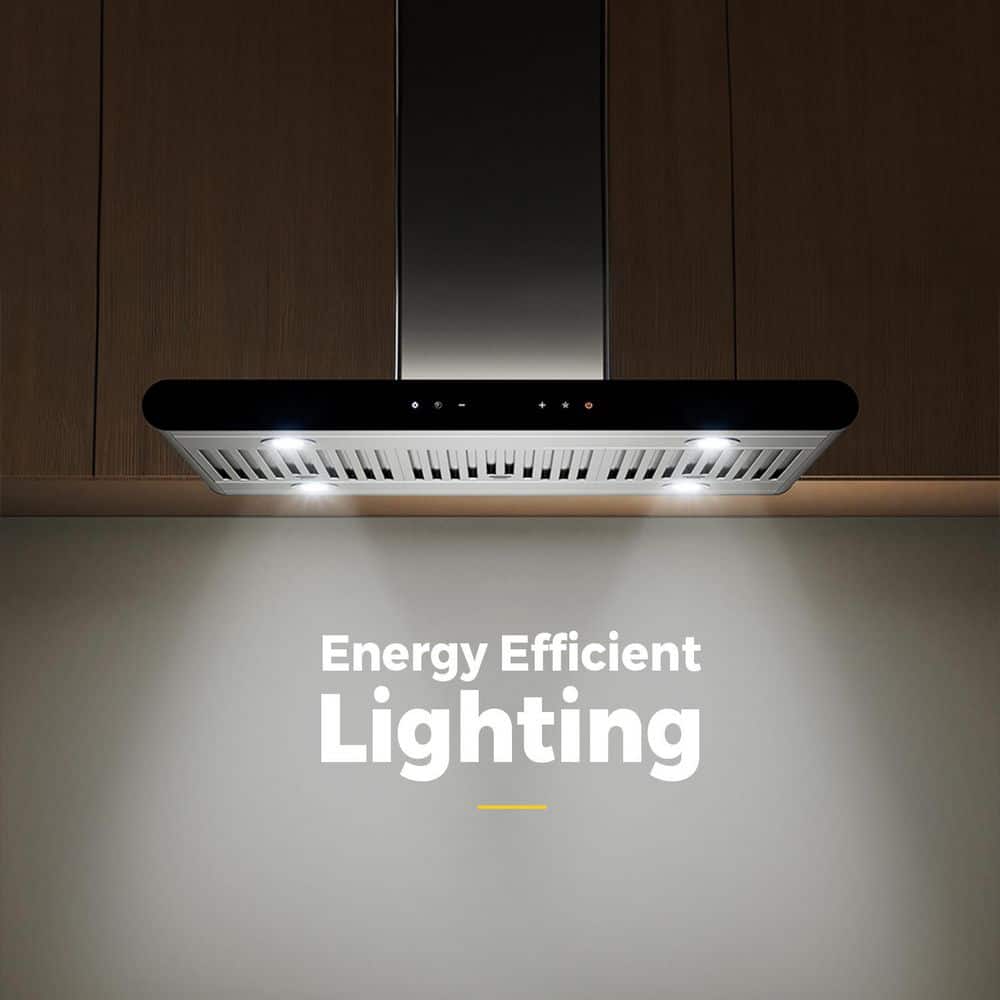 Unbranded 36 in 900CFM Ducted Insert Range Hood in Sliver Stainless Steel Island Mount Range Hood Tempered Glass LED Lights