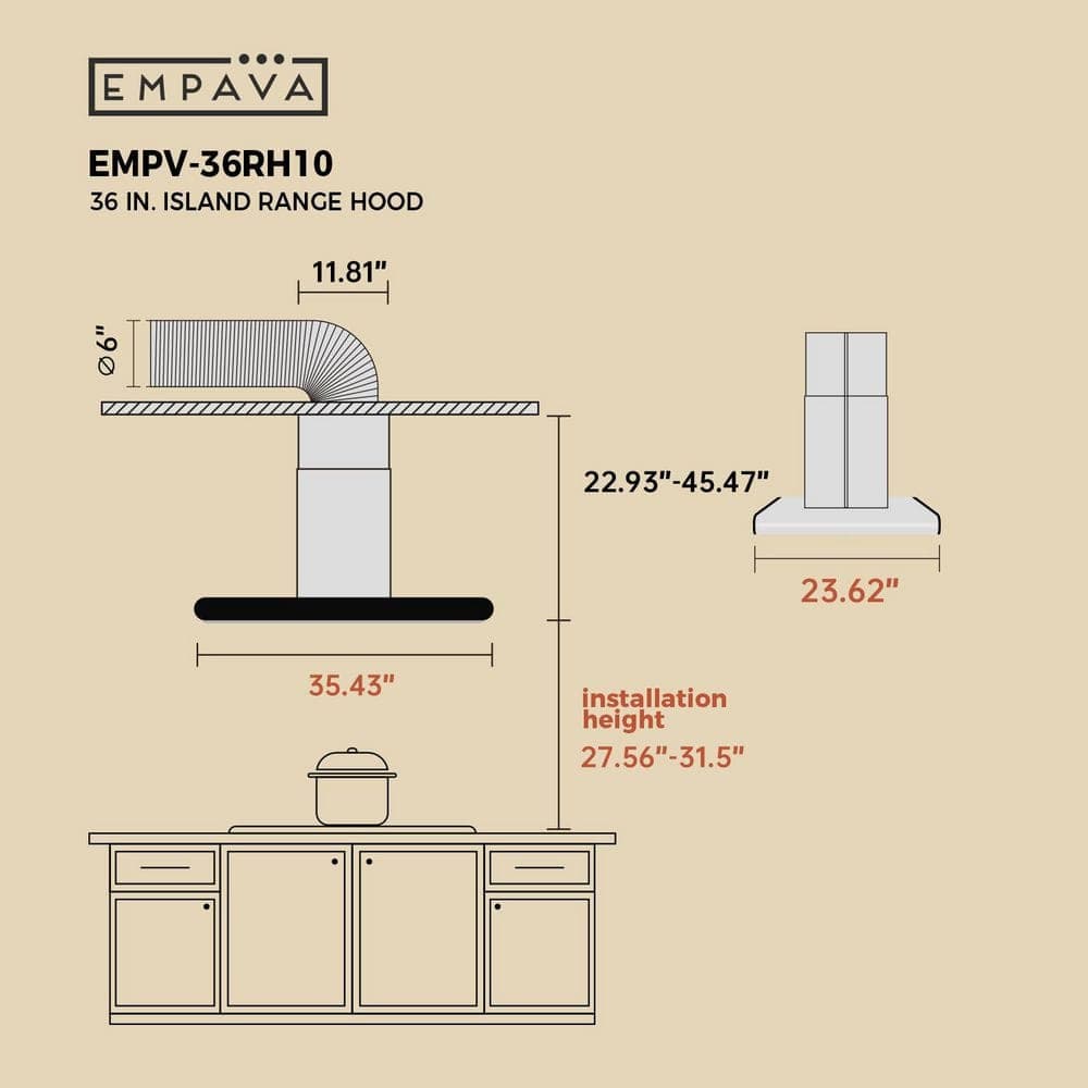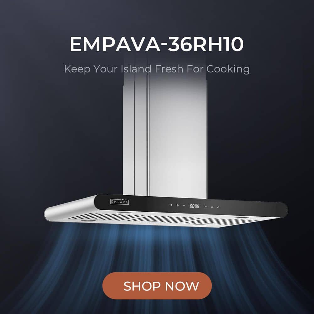 Empava 36 in. Convertible Stainless Steel Island Range Hood 400 CFM Ducted Kitchen Vent in Black, Dishwasher-Safe Filter