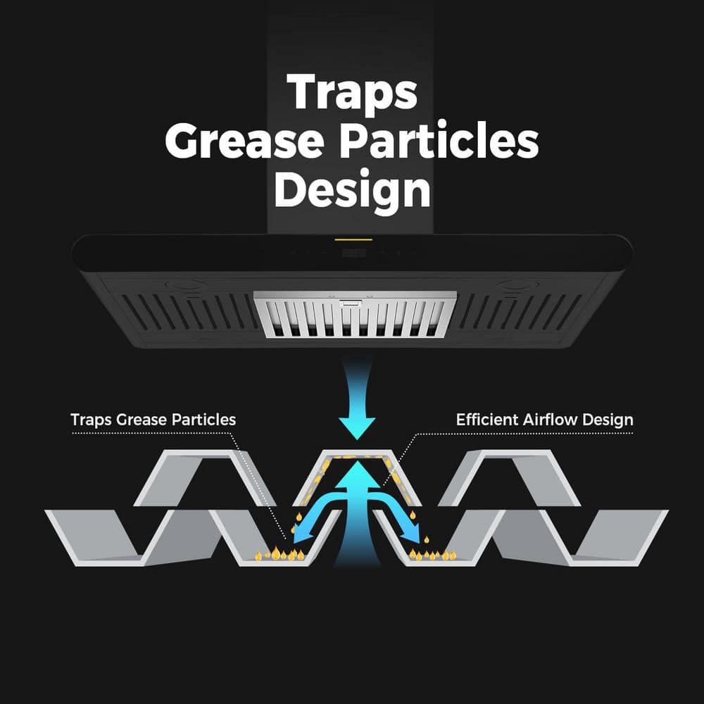 Imagine hosting a dinner party where sizzling steaks and stir-fries fill the air-yet your kitchen stays fresh and smoke-free. Our 36" island range hood with 400 CFM ducted exhaust tackles heavy cooking in open-concept kitchens, while its stainless-steel baffle filters (no messy mesh!) collect oil in grooves for easy cleanup. Unlike traditional mesh filters with holes that struggle to trap oil, our dishwasher-safe filters are reusable and built to last. The ultra-quiet 65 dB motor and 3-speed fan adapt to any recipe, from searing to simmering. Four 2W LED lights brighten your stovetop for midnight snacks, and the tempered glass + 18-gauge steel resists splatters and scratches. With ETL certification and a 3-year US warranty, this hood is a favorite for kitchen upgrades and new builds.