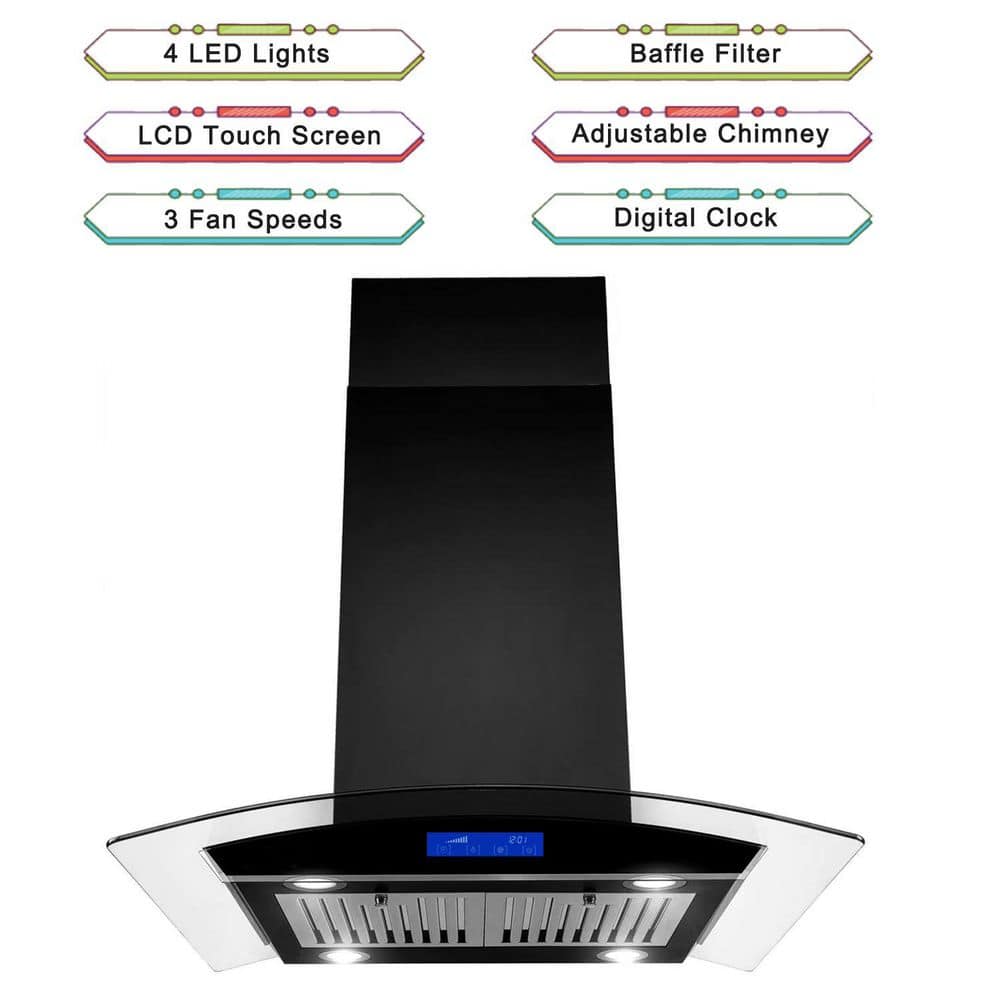 Flynama 36 in. 900 CFM Island Mount with 4-Light Range Hood in Black