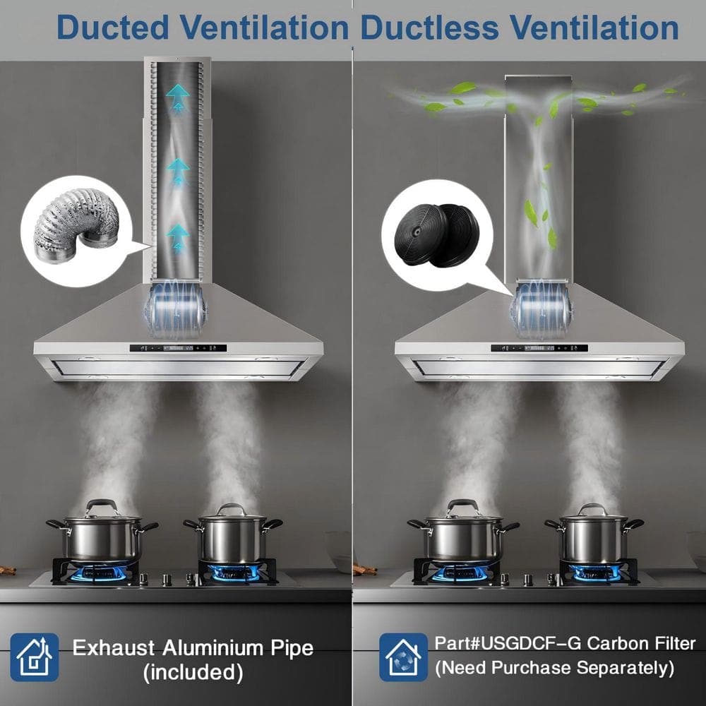 Tieasy 36 in. 700-CFM Ducted/Ductless Island Range Hood in Stainless Steel with Gesture Sensing and Touch, 3-Speeds Fan
