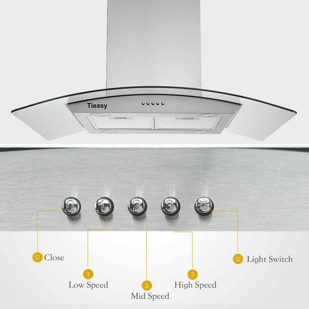 Tieasy 36 inch Island Range Hood 700 CFM Ceiling Mount Hood Stainless Steel Stove Vent Hood with Tempered Glass,Button Controls