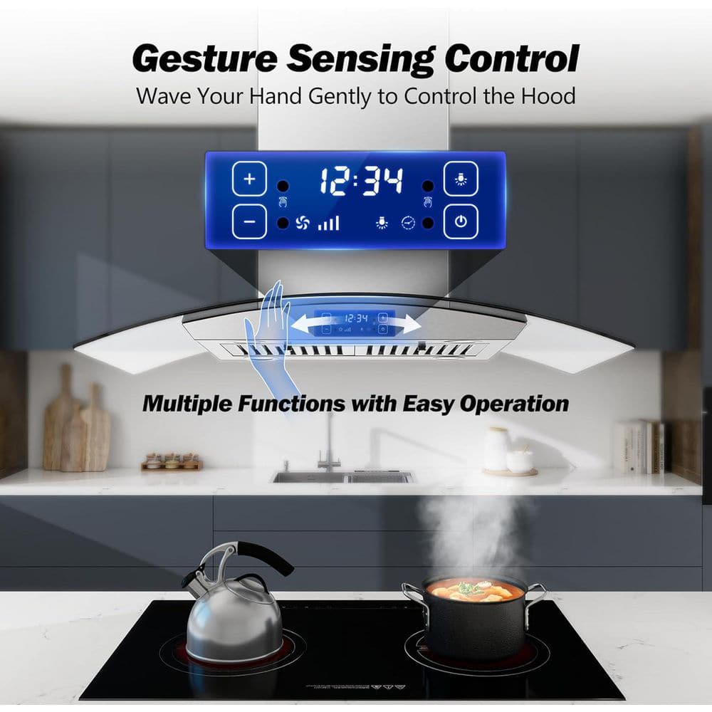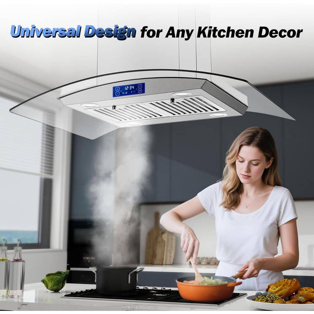 Tieasy Island Range Hood 36 inch 700 CFM Ceiling Mount Kitchen Stove Hood Ducted with Tempered Glass 4 LED Lights Touch Control