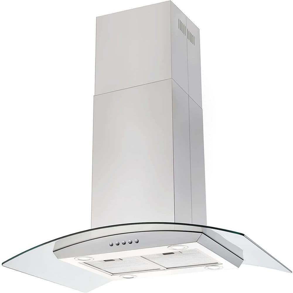 This is a 36 in. professional island stainless steel range hood. This hood is designed to be both elegant and powerful. The range hood comes with everything you need for easy installation and use, including two 23.6 in. retractable chimney pieces that fit most ceilings between 7.5 and 8.5 ft. Comes with dishwasher safe stainless steel baffle filter and built-in 4 LED lighting for ease of use.