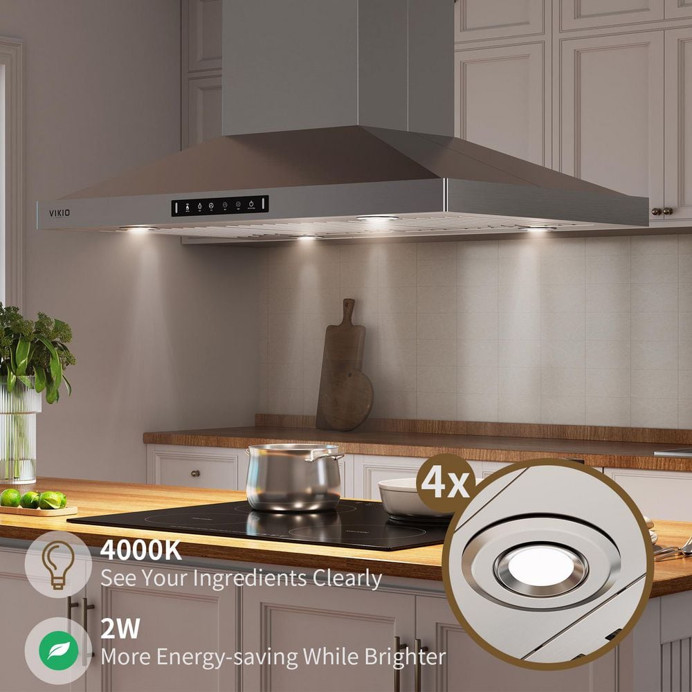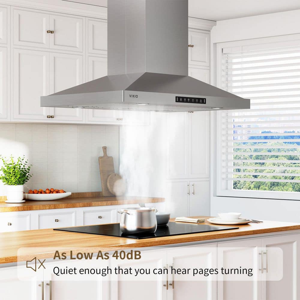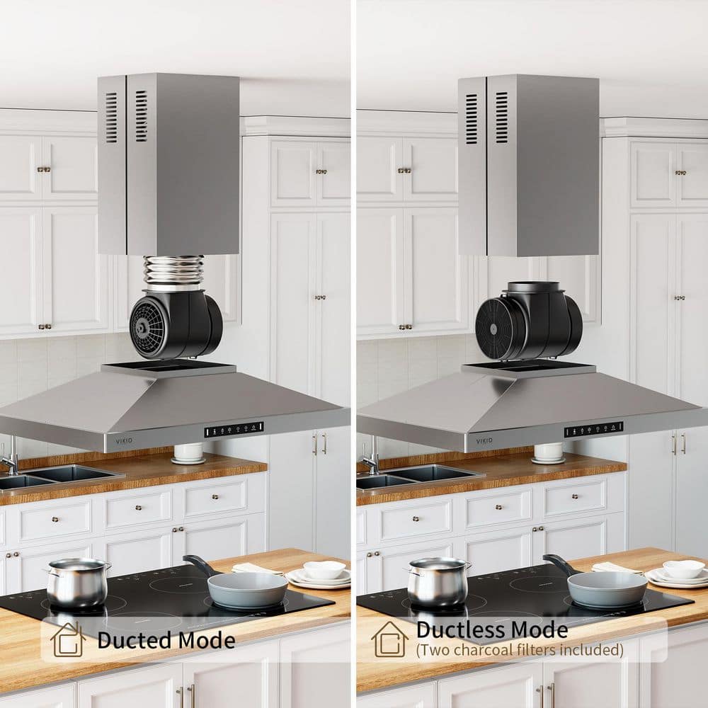 VIKIO 30 in. 380CFM Ductless Convertible Island Mount Range Hood in Stainless Steel with 4-LED Lights Gesture Control,Filters