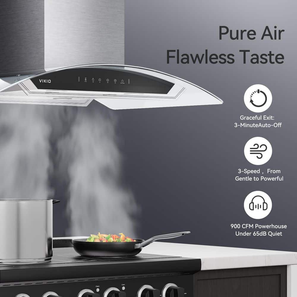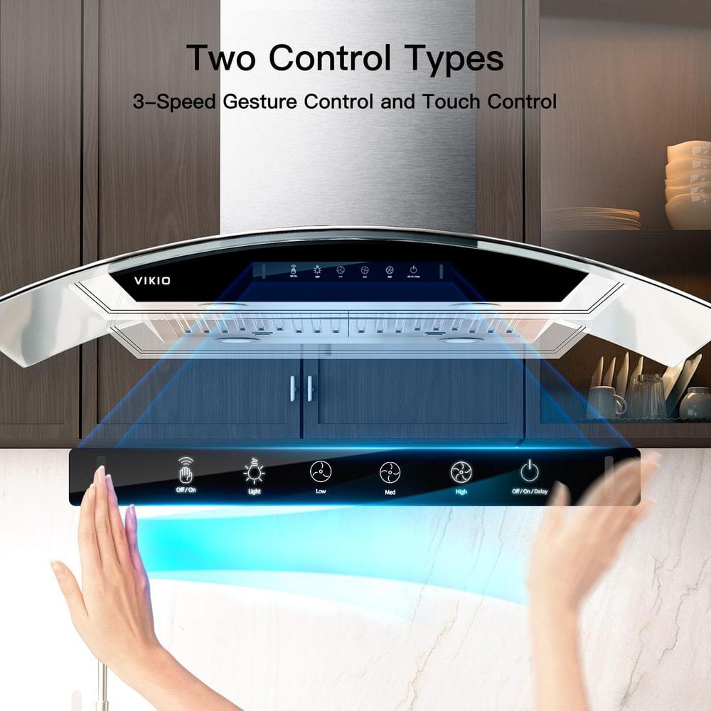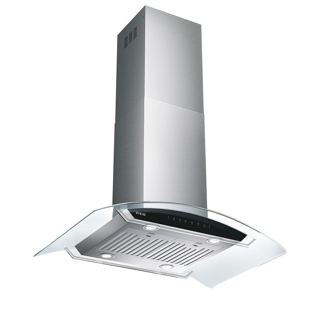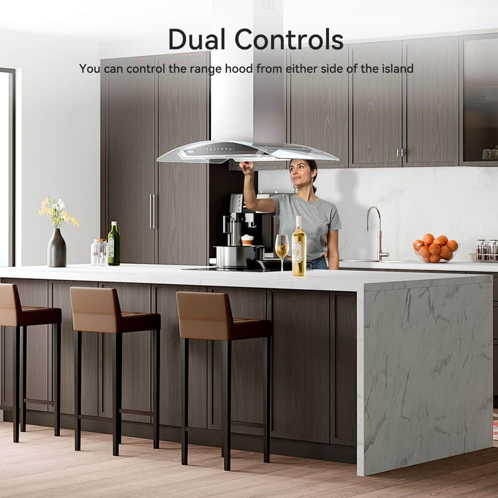 VIKIO 35.4 in. 900 CFM Ducted Island Mount Range Hood in Stainless Steel with LED Light and Glass Panel