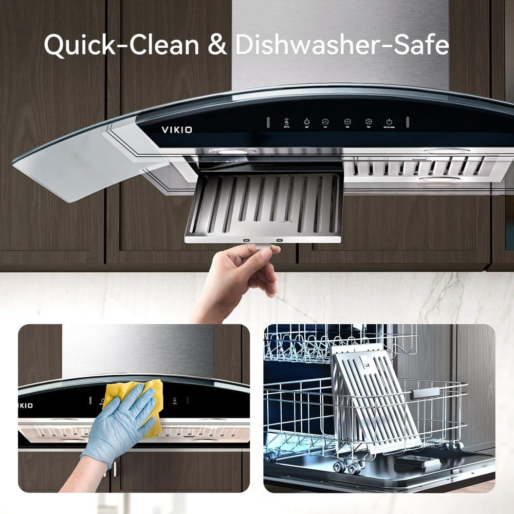 This new version of intelligent modern range hood, the mechine is composed of glass panel and 1 mm thick stainless steel panel looks more advanced. The gesture sensing function and is newly added to the original touch switch panel. Even if your hands are stained with oil,don't worry about dirtying the it. Add a modern look to your kitchen with this slick low profile stainless steel professional range hood while it works efficiently getting rid of greasy smoke and odors. Choose this product and you will get a good helper in the kitchen.