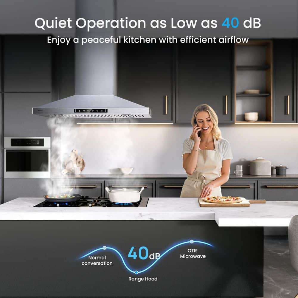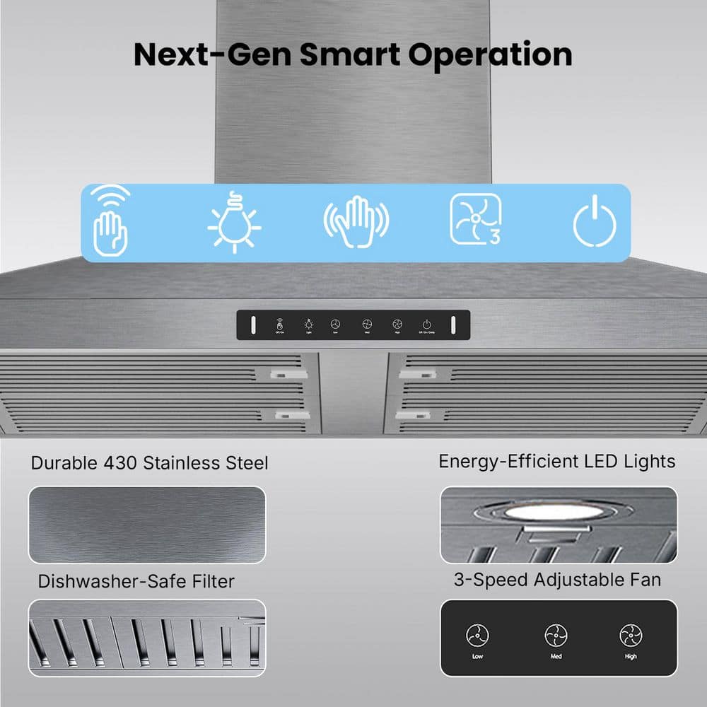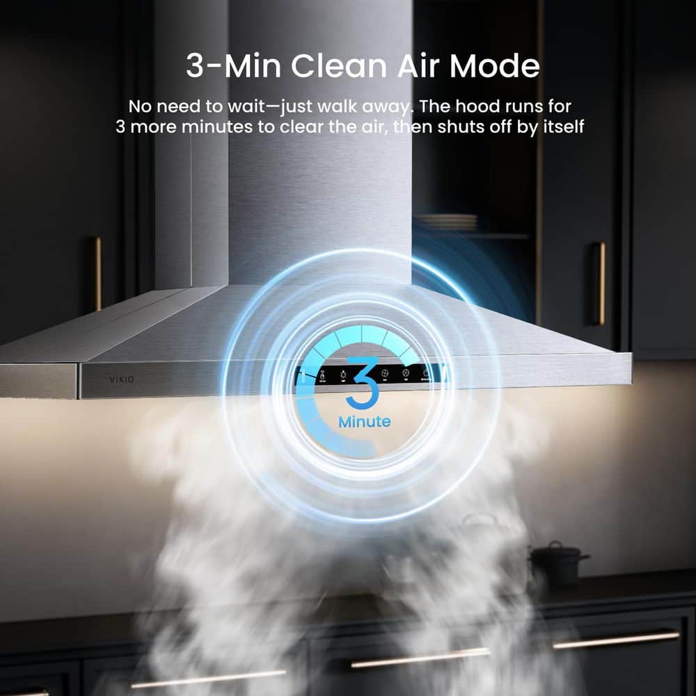 Elevate your kitchen with our advanced 500CFM range hood. Featuring touchless gesture control, 3-speed settings, and quiet operation below 65dB, it efficiently clears smoke and grease while keeping your space clean. The durable, easy-to-clean stainless steel design adds style to your kitchen. At VIKIO, we don't just create appliances; we craft solutions that seamlessly fit your lifestyle.