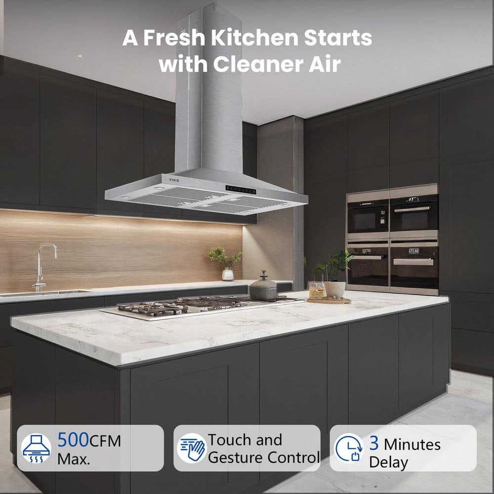 VIKIO 42 in 500CFM Convertible Island Range Hood in Stainless Steel with Gesture control and 4 LED Lights