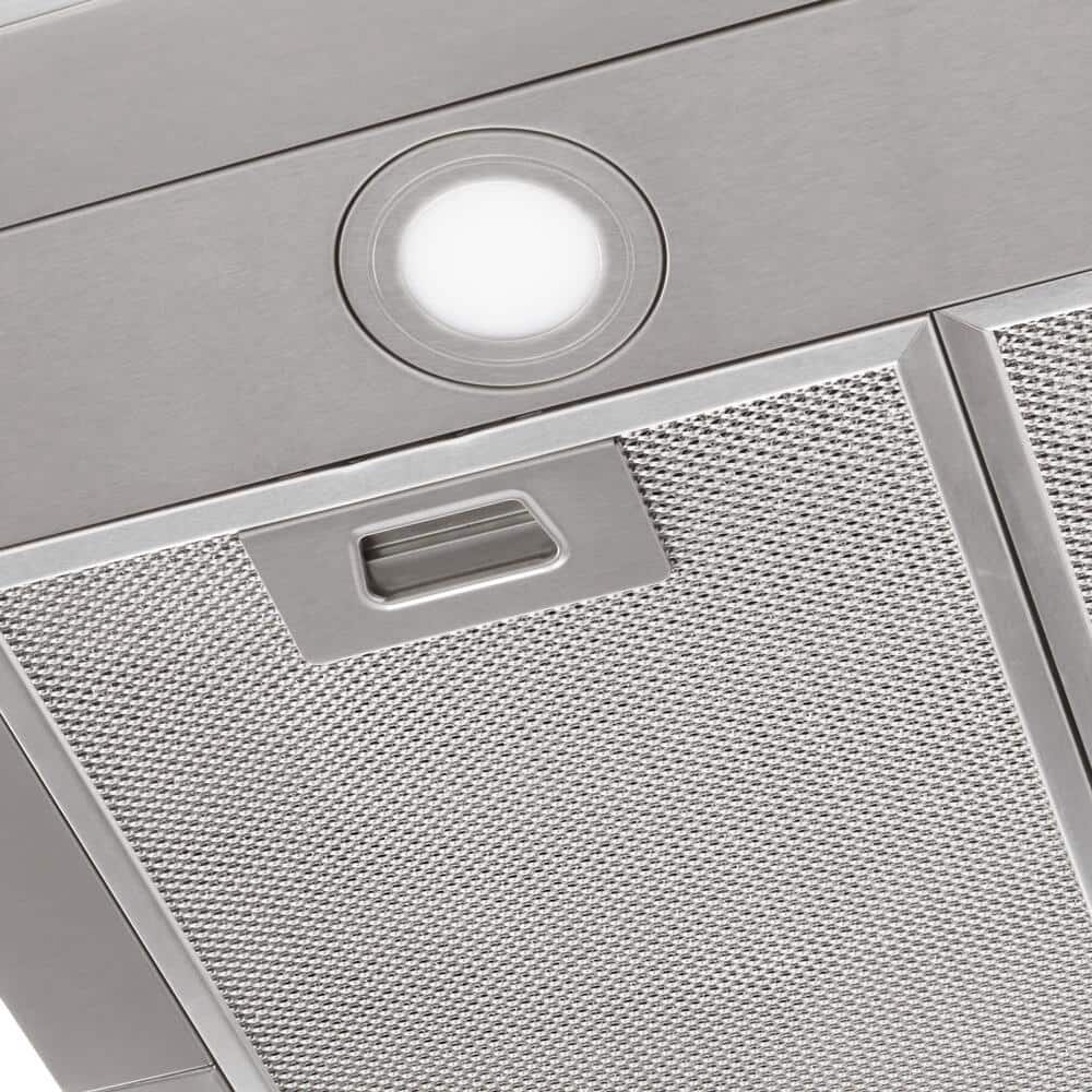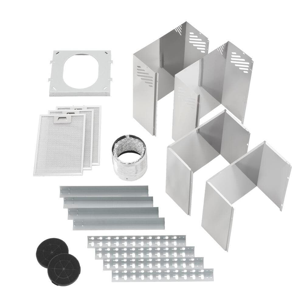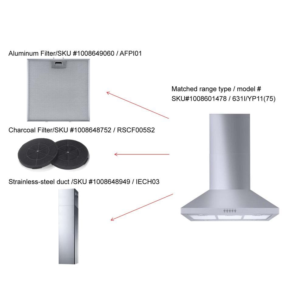 This 30 in. island mounted range hood is constructed of premium 430 stainless steel. Mesh filters are dishwasher safe and easy to remove and clean. This model also comes with 4-bright energy saver soft white LED lights, low noise level operation, 350 CFM air flow, easy to operate rocker controls for high and low fan speed and on and off light switch. This range hood comes with all the parts you need for easy installation. Adjustable and telescoping chimney can fit 8 to 9 ft. ceiling. This unit is convertible, can be vented out of your dwelling or recirculating (ductless) with charcoal filters.(Charcoal filters,Part# 1008648752)