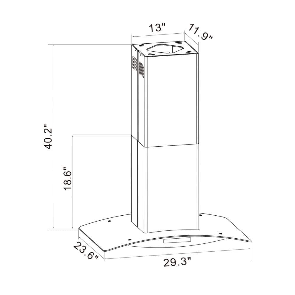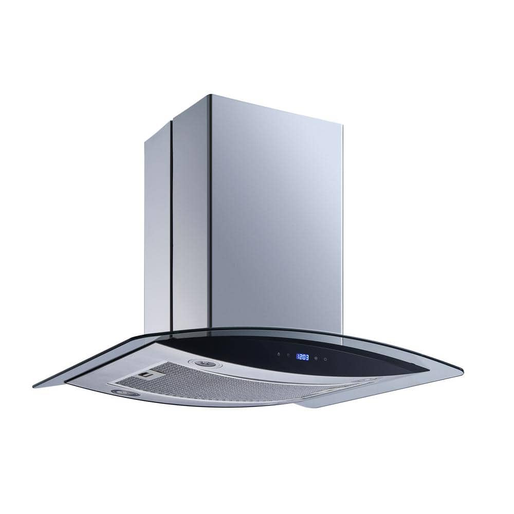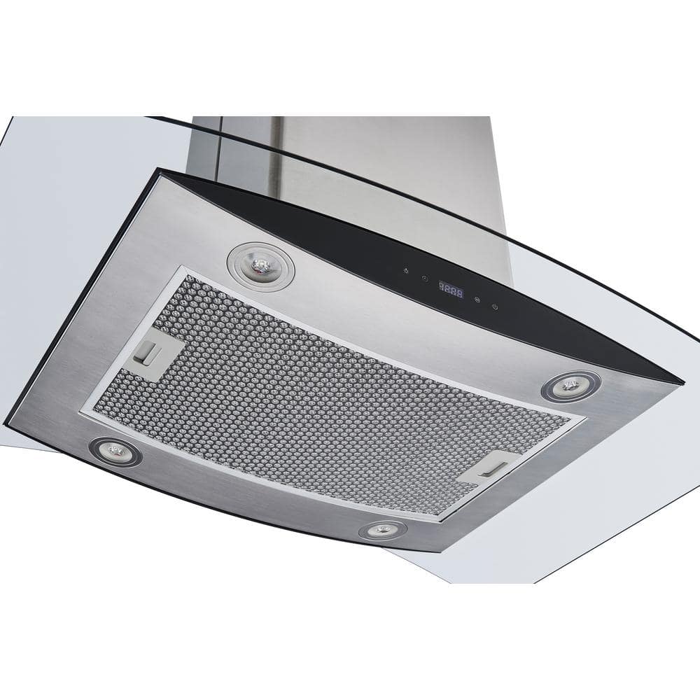 Winflo 30 in. 600CFM Convertible Island Range Hood in Stainless Steel/Glass with Hybrid Mesh Filter and Touch Control