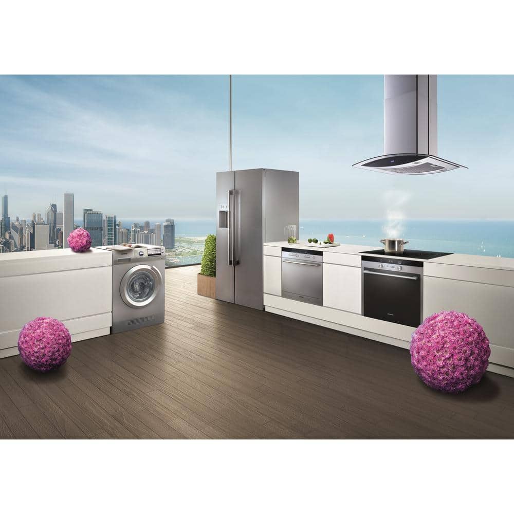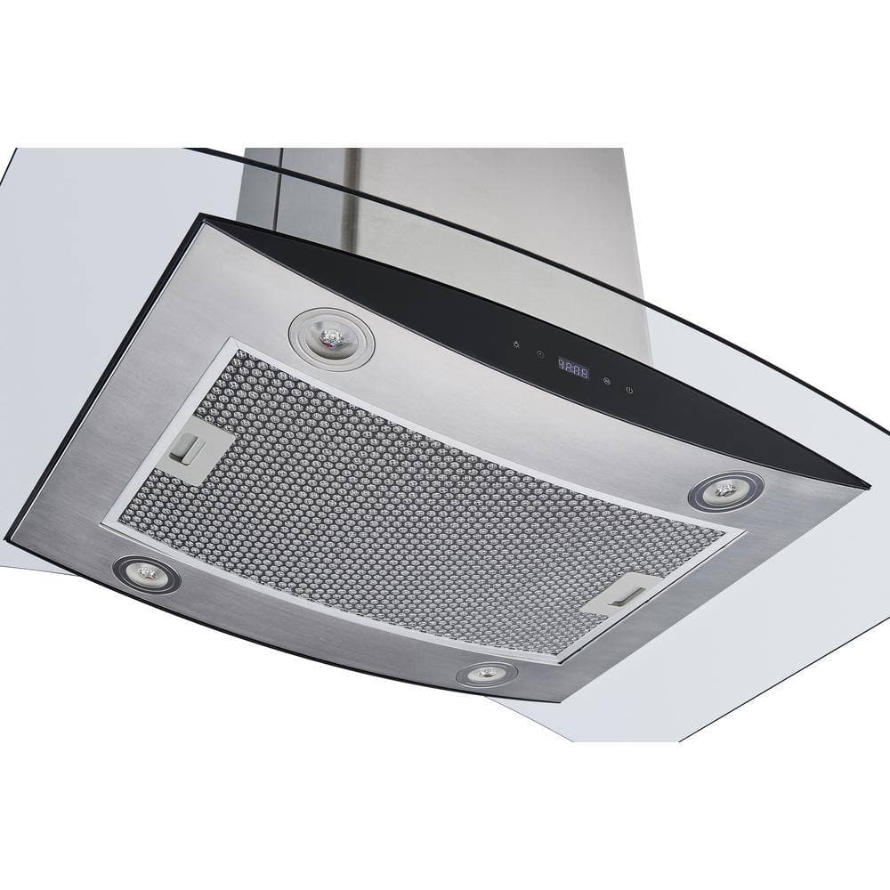 This beautiful 30 in. European design island mounted range hood will create splendor and elegance in your kitchen. Constructed of high quality 430 stainless steel and clear tempered glass. Complete with unique curved design aluminum mesh filter with decorative stainless steel panel that removes smoke and grease from your cooking area and are dishwasher safe. Powerful suction with 600 CFM air flow rate (max velocity) is perfect for household use and an ideal balance between power, energy efficiency and noise control. This model also comes with 4 bright energy saver LED lights, low noise level operation, touch sensor control panel and 3-level fan speed. This range hood comes with all the parts you need for easy installation. Adjustable chimney can fit 8 to 9 Ft. ceiling. This unit is convertible, can be vented out of your dwelling or recirculating (ductless) with charcoal filters (sold separately, part # WRHF004S2)