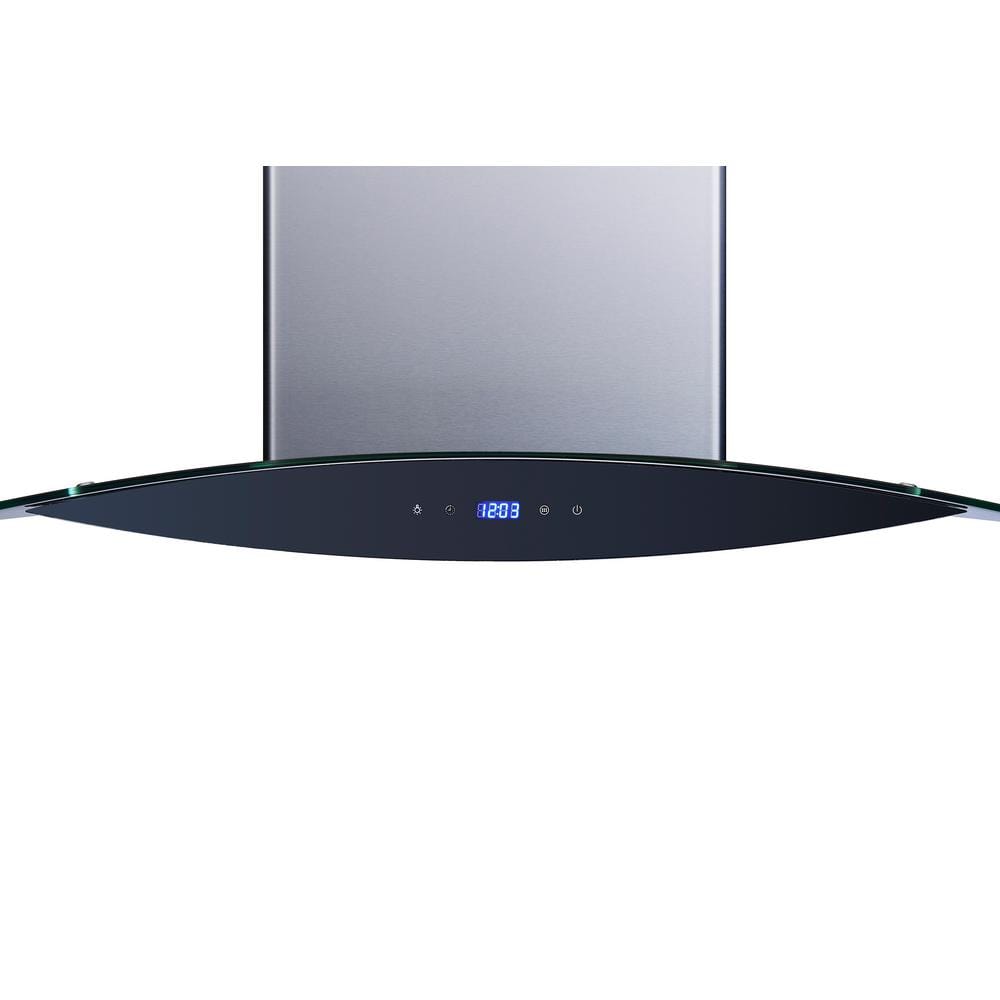 Unbranded 36 in 900CFM Ducted Insert Range Hood in Sliver Stainless Steel Island Mount Range Hood Tempered Glass LED Lights
