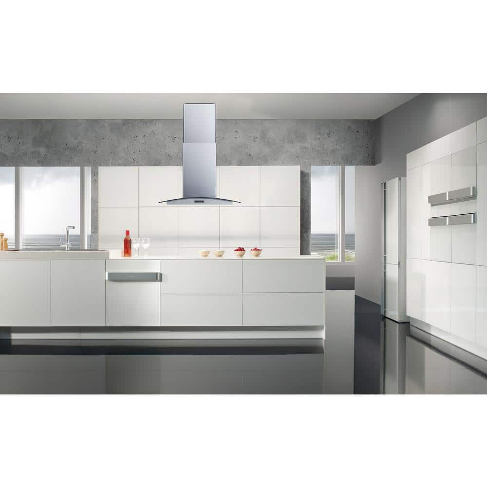 Clear out your kitchen with this 30-in. island mount range hood. A four-sided suction design and a 400 CFM motor refresh air and remove impurities. The easy-to-clean aluminum mesh filter with a noise-reducing sound shield panel captures grease. For style and durability, it features a contemporary stainless steel design. The four LED lights give you visibility.
