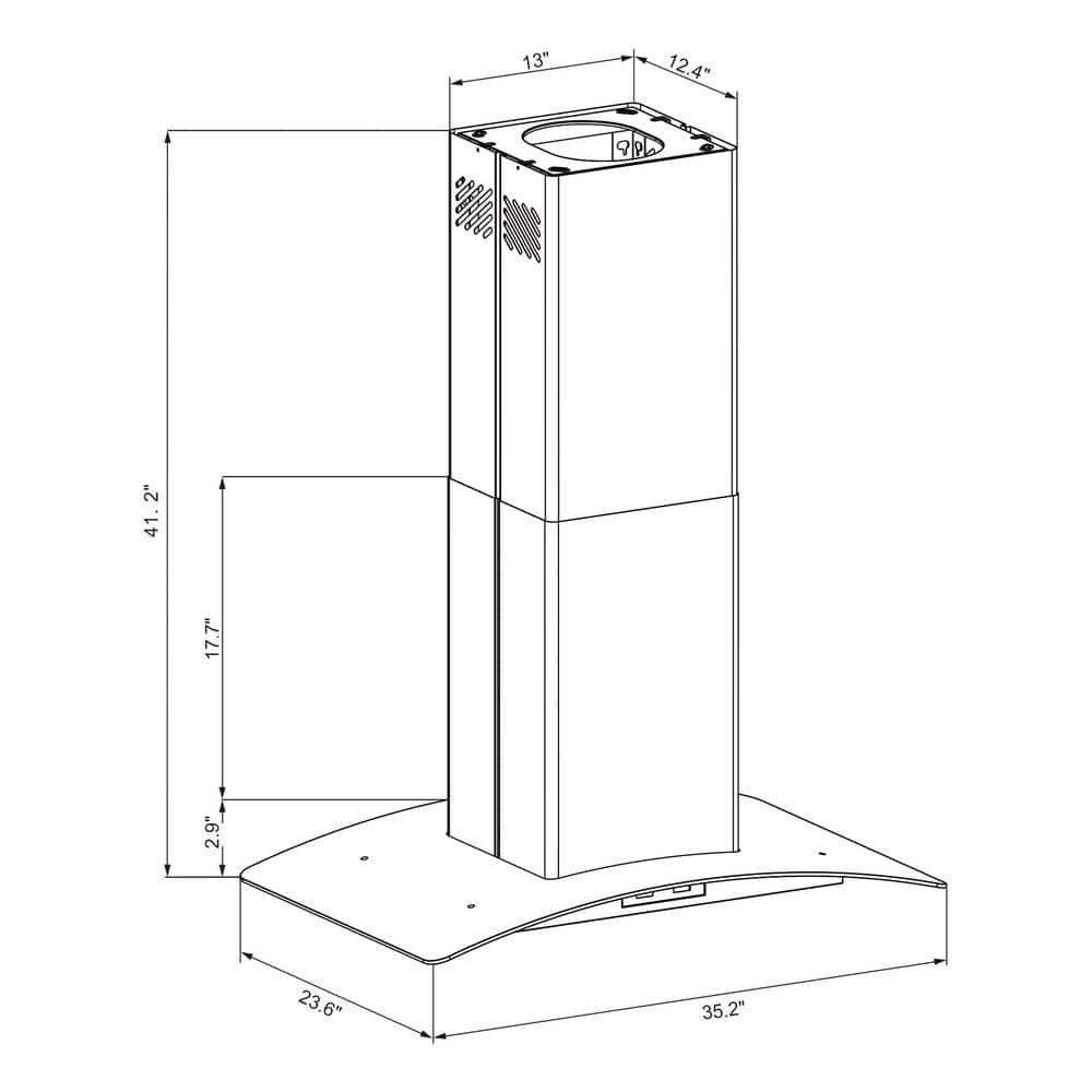 Zephyr Luce 36 in. 600 CFM Convertible Island Mount Range Hood with LED Light in Stainless Steel