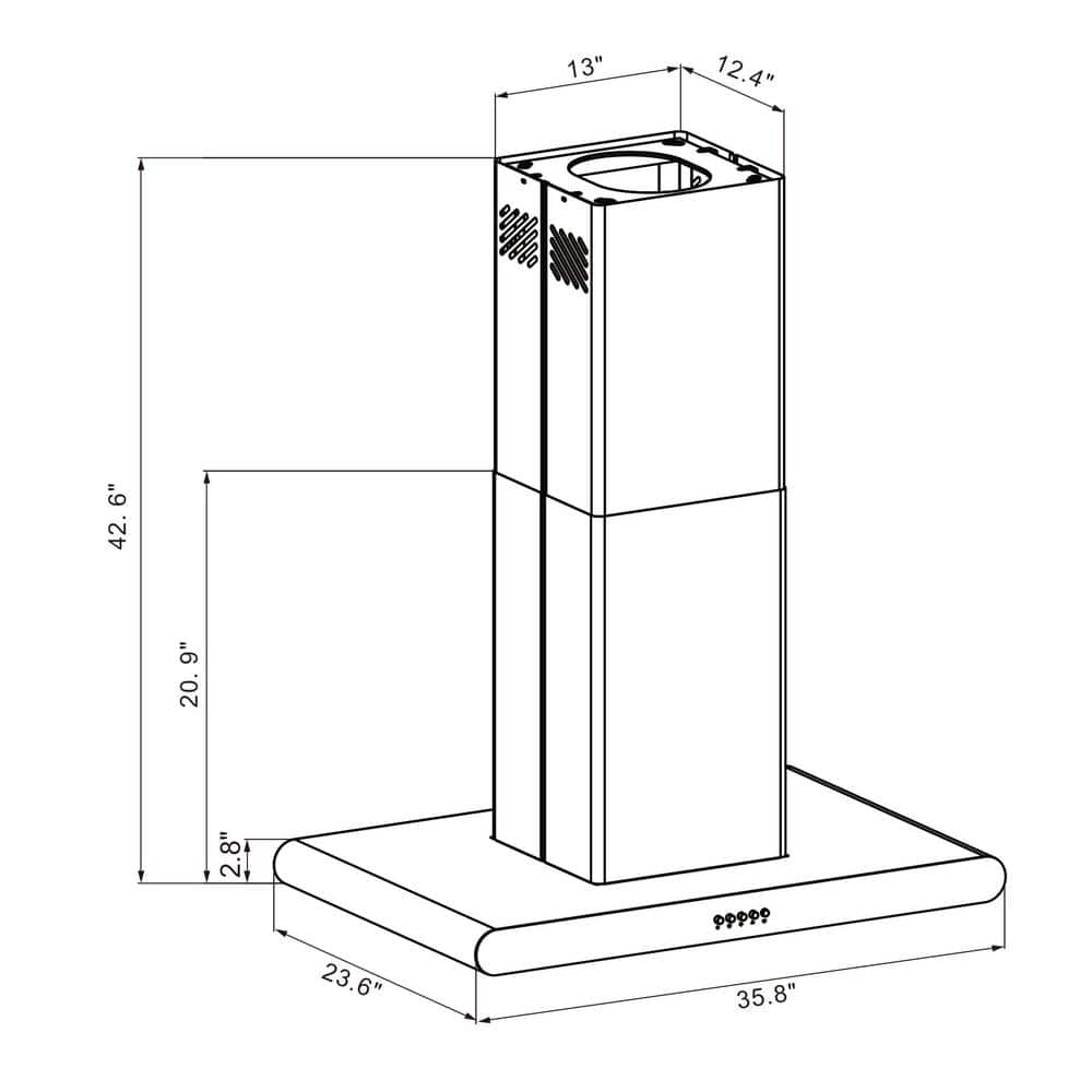 Zephyr Luce 36 in. 600 CFM Convertible Island Mount Range Hood with LED Light in Stainless Steel