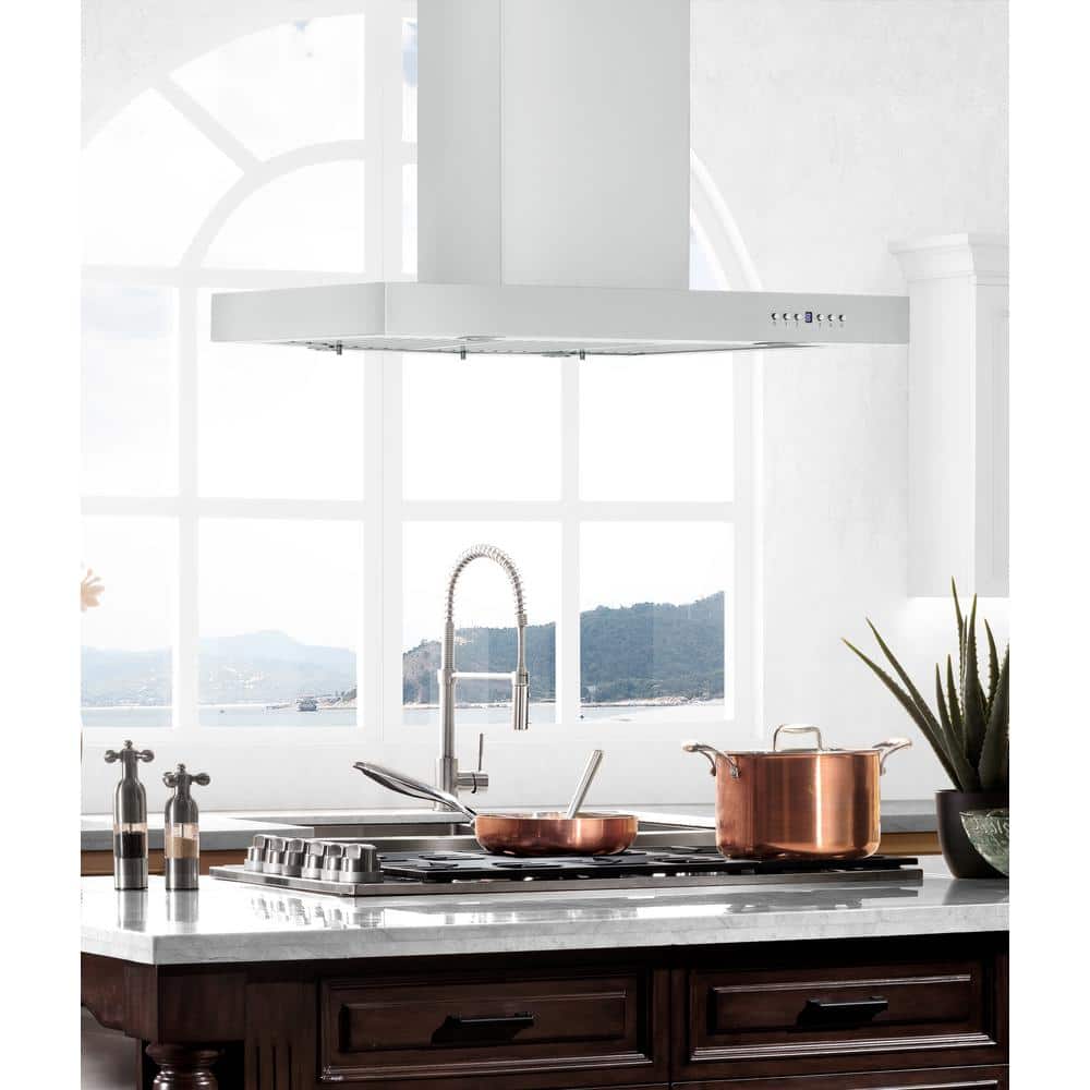 Zephyr Luce 36 in. 600 CFM Convertible Island Mount Range Hood with LED Light in Stainless Steel
