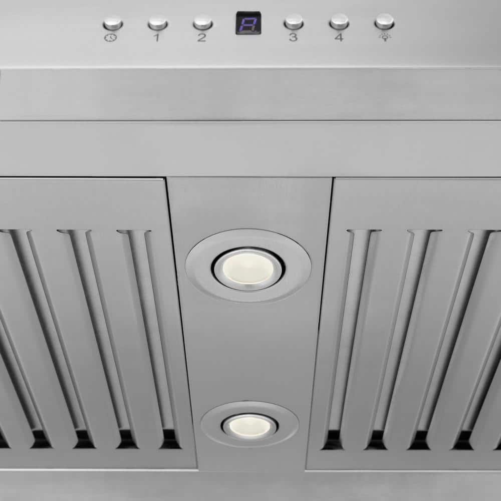 Unbranded 36 in 900CFM Ducted Insert Range Hood in Sliver Stainless Steel Island Mount Range Hood Tempered Glass LED Lights