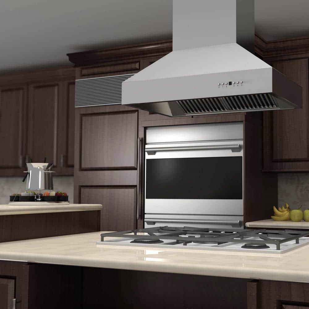 Experience ZLINE Attainable Luxury with industry-leading kitchen and bath products that provide an elevated luxury experience, all designed in Lake Tahoe, USA. The ZLINE 697i-304-36 is a 36 in. professional island mount outdoor approved stainless steel range hood with a modern design and built-to-last quality, making it a great addition to any kitchen. This hood's high-performance, 700 CFM 4-speed motor will provide all the power you need to quietly and efficiently ventilate your stove while cooking. With its classic 304 grade stainless steel, this range hood contains rust, temperature, and corrosion-resistant properties to ensure a durable vent hood that will last for years to come. Enjoy modern features, including built-in LED lighting for an illuminated culinary experience and dishwasher-safe stainless steel baffle filters for easy clean-up. This island mount range hood has a ducted vent with easy, simple installation. Enjoy easy installation and an easy recirculating conversion process. ZLINE Kitchen and Bath stands by all products with its manufacturer parts warranty. The 697i-304-30 ships next business day when in stock.