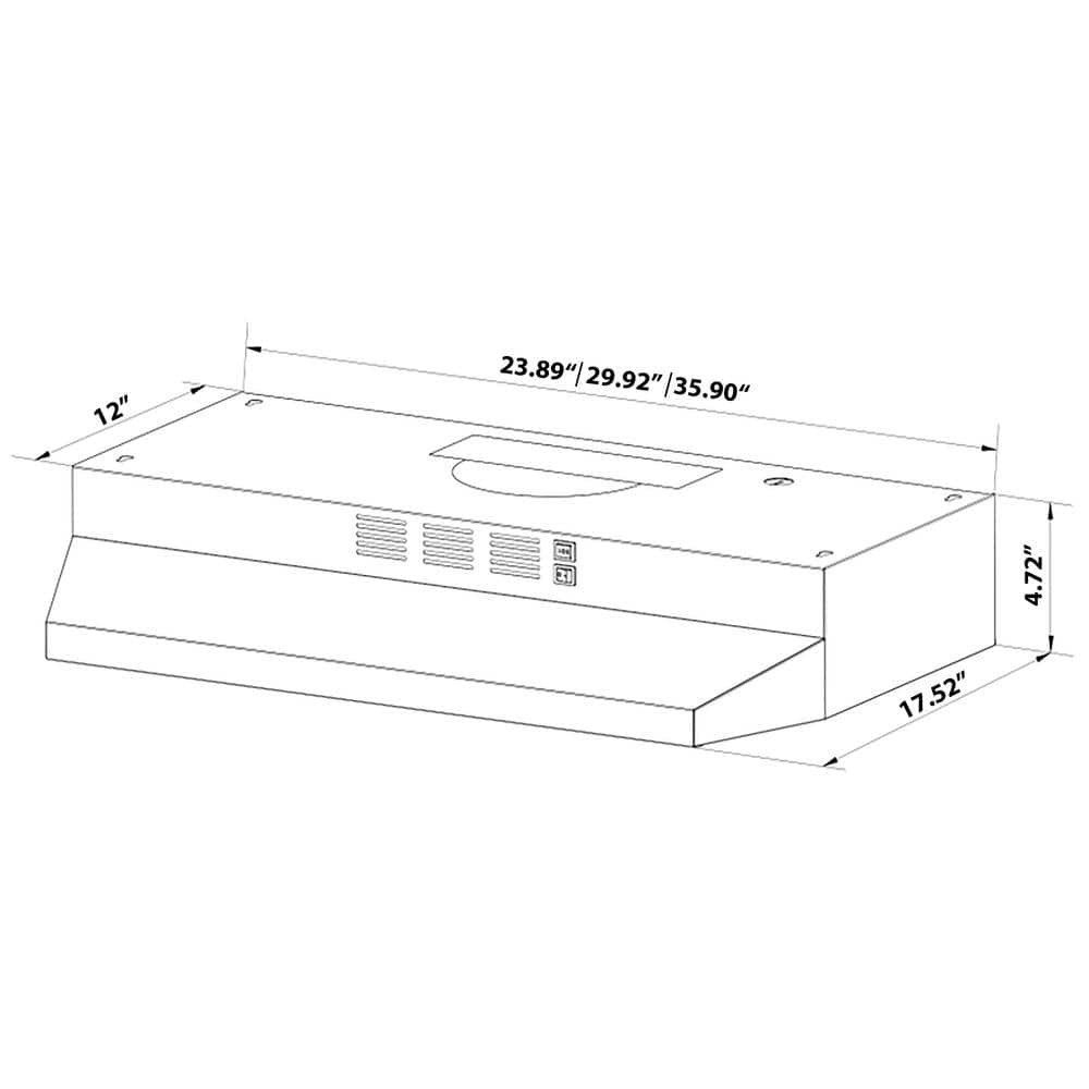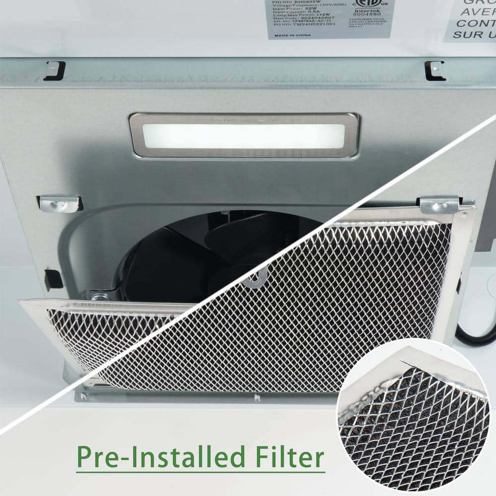 Slim Space-Saving Design, 24-inch Under Cabinet Range Hood, a perfect blend of style and functionality. Elevate your kitchen with its contemporary design that seamlessly complements any kitchen decor. Efficiently eliminate odors with the dual-speed fan, controlled by a convenient rocker switch, providing up to 176 CFM of airflow while maintaining a pleasant cooking environment. A reusable mesh filter that can be easily removed for hand washing. Illuminate your cooking space with the built-in LED light and enjoy a fresher kitchen thanks to the included charcoal sponge filter.