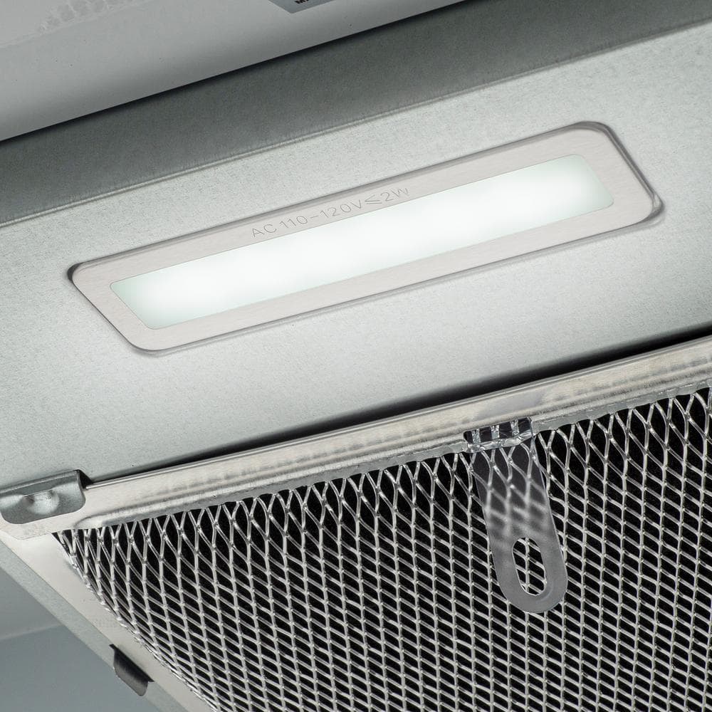 An excellent value, the AKDY RH0332N Undercabinet Range Hood, 30-inch in stainless. Designed for versatility, this range hood can be converted from ducted to ductless operation with the included carbon filter. The washable aluminum mesh filter effectively captures grease and debris from your cooking surface. Dual speed modes, 88CFM, and 176CFM airflow efficiently remove smoke, steam, and noxious odors from your kitchen. Its low-profile, modern design in stainless steel adds a sleek and contemporary look to your kitchen while delivering great performance.