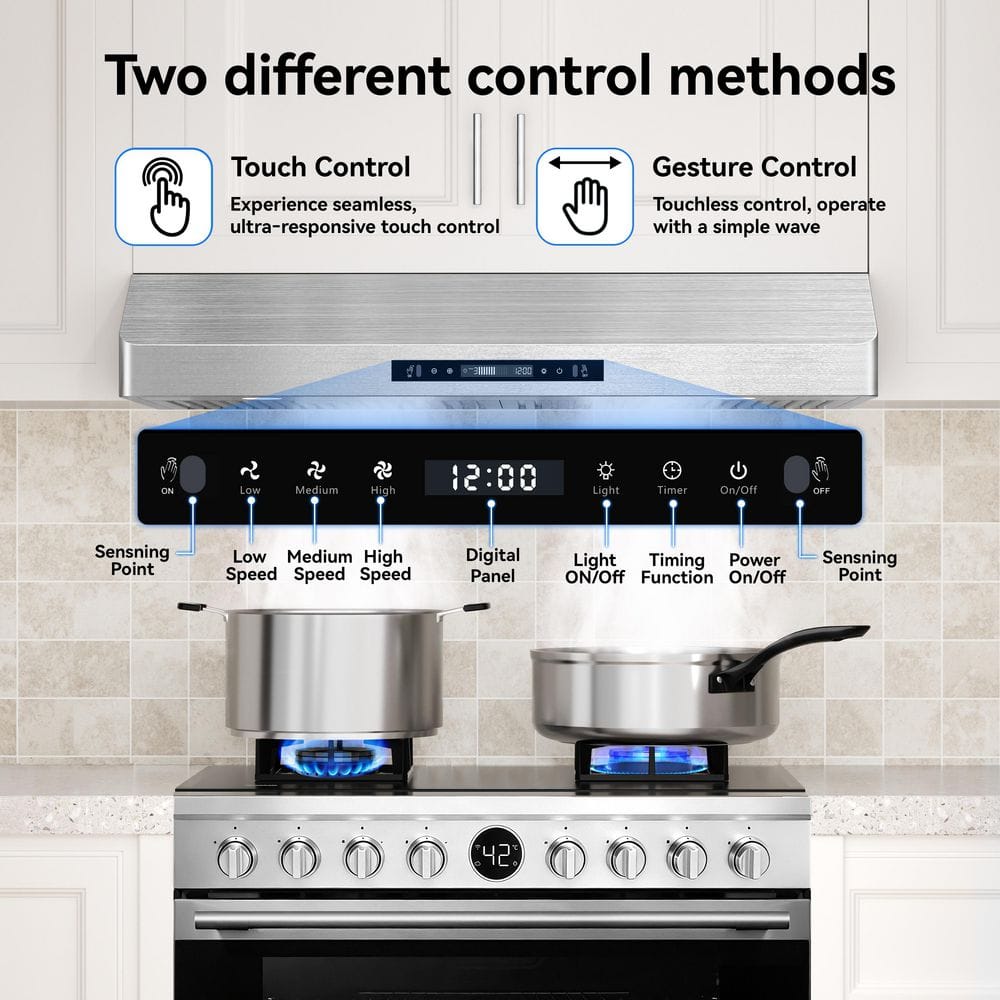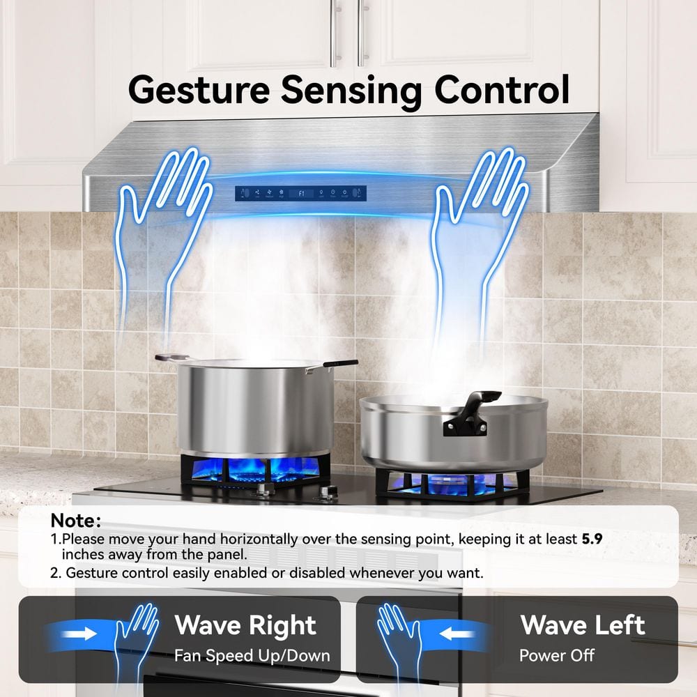 Elevate your cooking experience with the Anlicho Under-Cabinet Range Hood. Designed for modern kitchens, this ducted hood boasts a 900 CFM dual motor that quickly eliminates smoke, grease, and odors from heavy cooking. Its fingerprint-resistant stainless steel finish blends seamlessly into any cabinet setup, while two control modes-touch control and gesture control let you operate power, speed, and lights without touching the panel, keeping it clean and smudge-free.