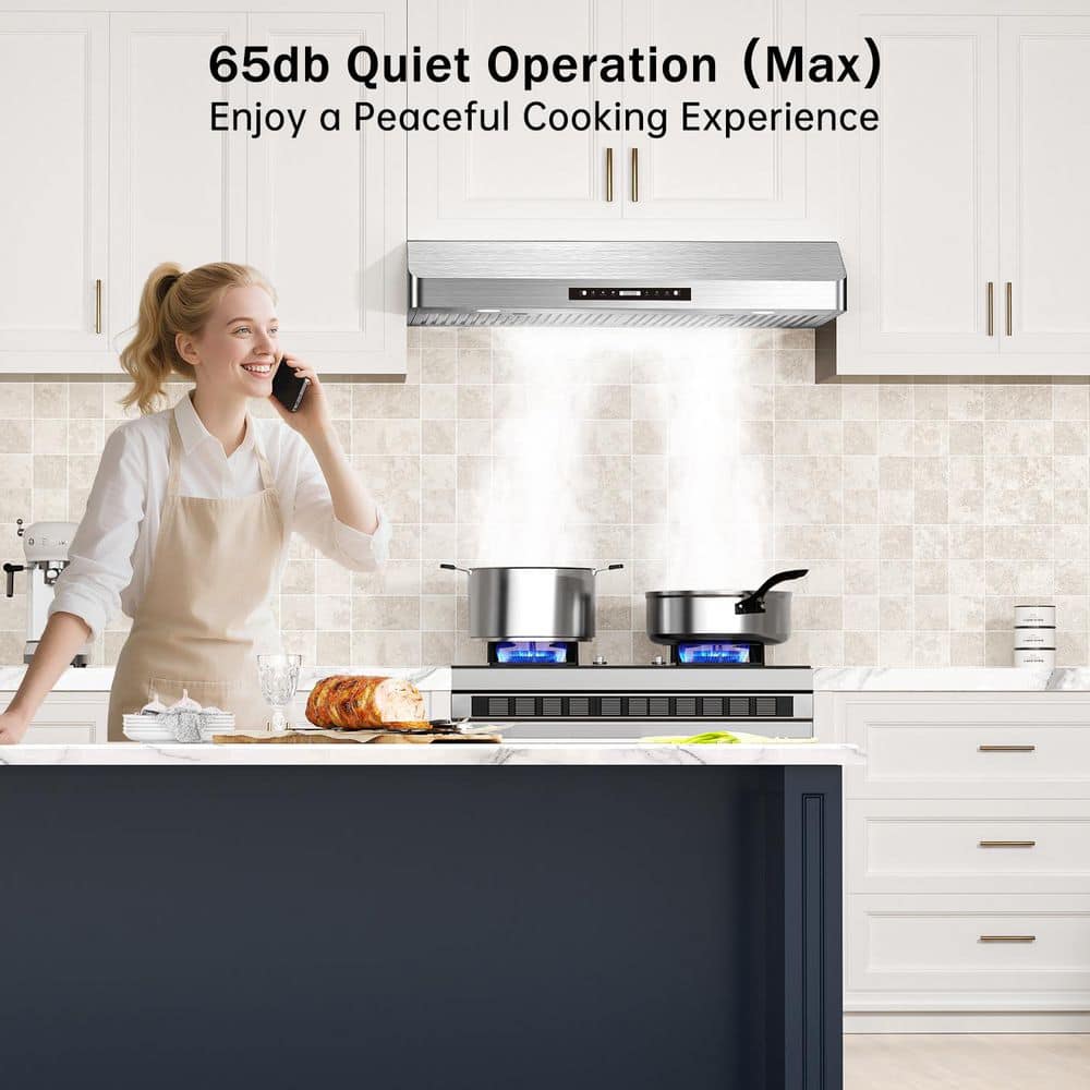 BRANO 30 in. Under Cabinet Range Hood with Voice/Gesture/Touch Control, 900 CFM Kitchen Hood Vent, 4-Speed Exhaust Fan