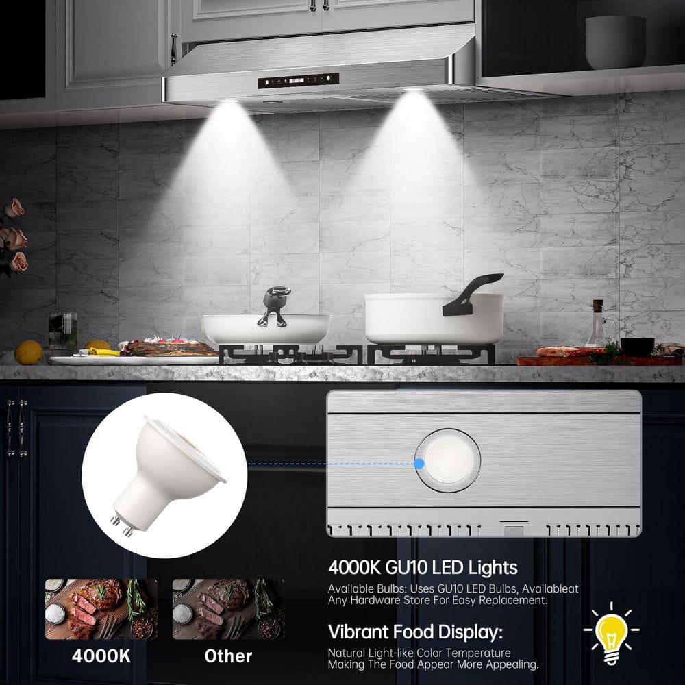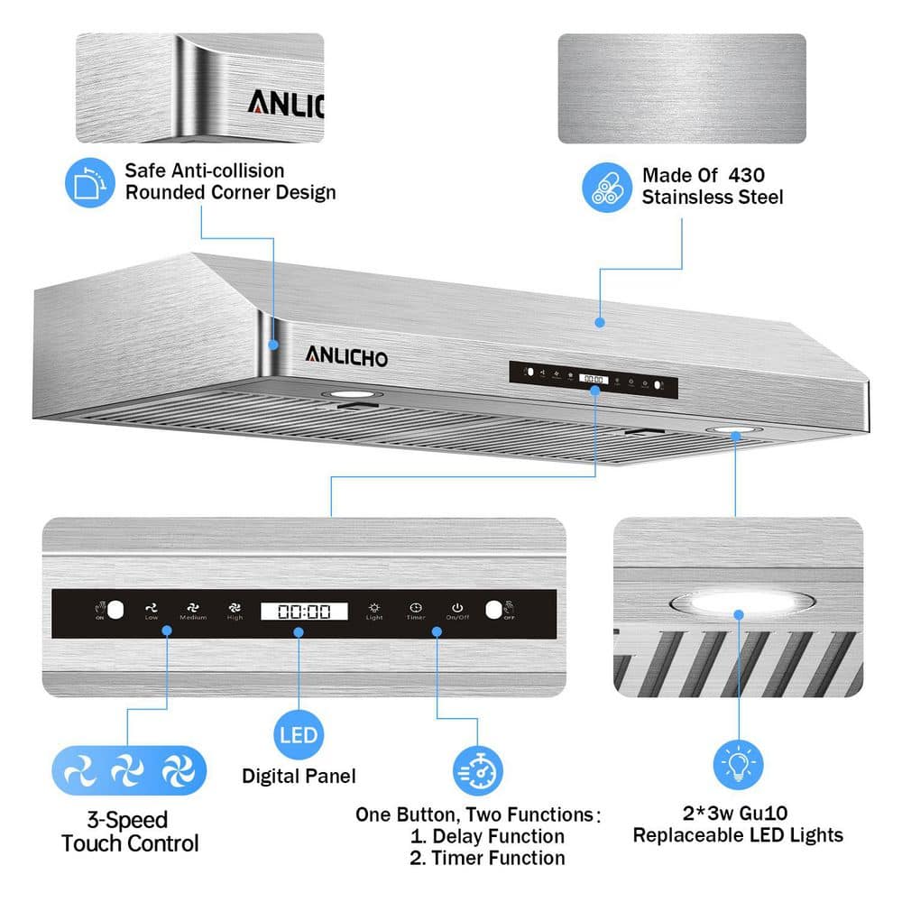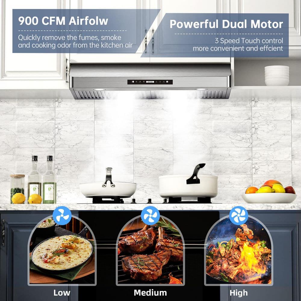 Anlicho 36 in. 900 CFM Ducted Under Cabinet Range Hood in Stainless Steel with 3-Way Venting and Removable GU10 LED