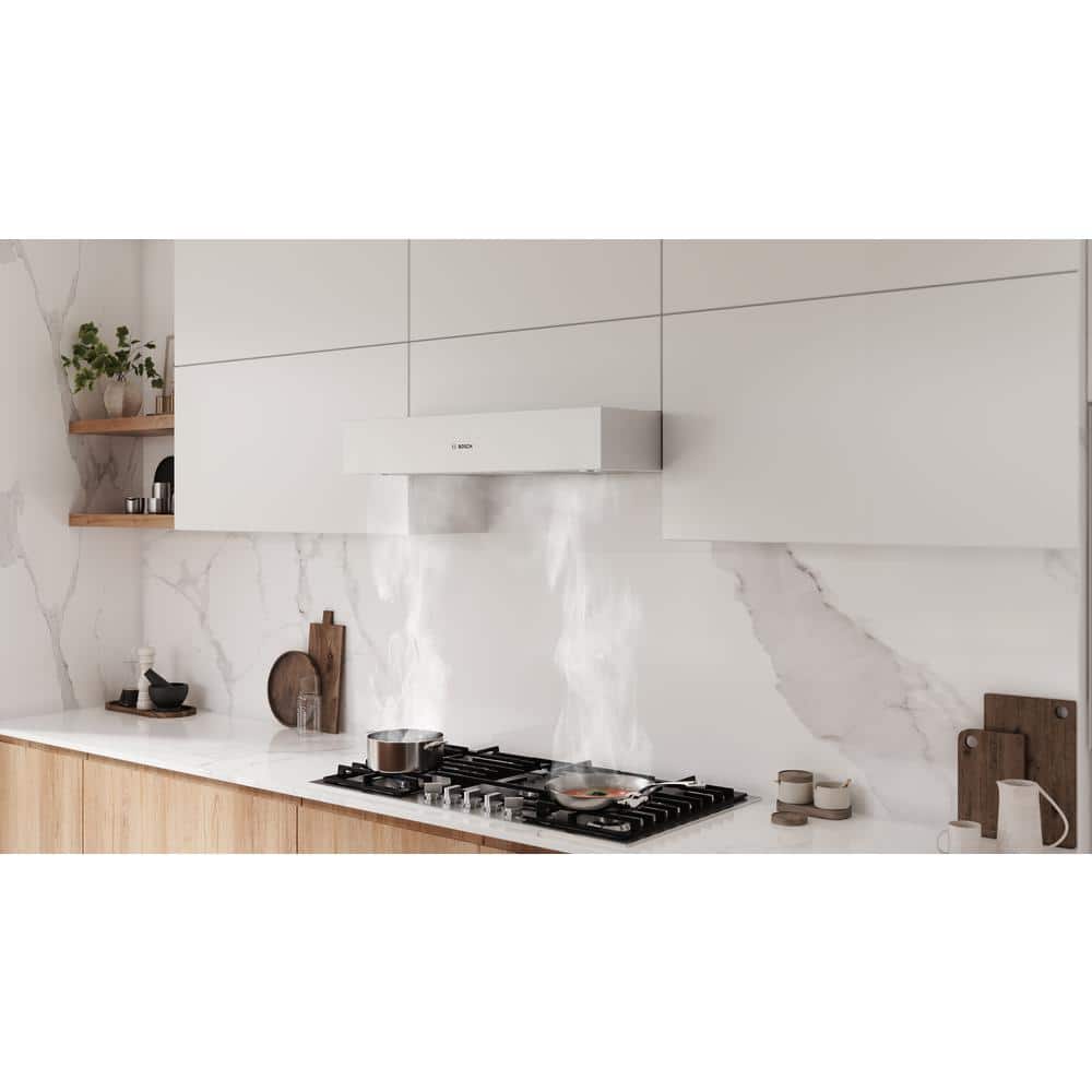 The Bosch 500 series under-cabinet hood is the perfect option for smaller kitchens and compact spaces. Designed to effectively remove smoke, steam and odors, this hood is powerful yet quiet. A sleek 30 in. wall installation is ideal for a range of kitchens. Plus dishwasher-safe filters simplifies your maintenance routine.