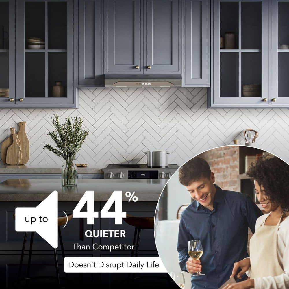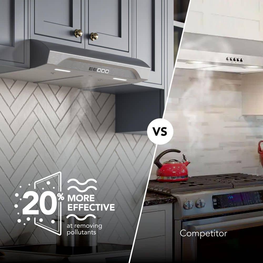 From the leader in residential indoor air quality, this under-cabinet range hood by Broan-NuTone is built to surpass industry standards with over 50 points of inspection, engineered as a reliable ventilation solution. The durable hood vent is up to 20% more effective at removing pollutants than the leading competitor with power ventilation at 350 Max Blower CFM to capture and remove smoke and odors from the kitchen. The Alta range hood is also up to 44% quieter: 1.5 sones is equivalent to a refrigerator running, so it wont interfere with daily life. The EZ1 Install System allows for a quick and easy 1-person installation, and the ENERGY STAR Certification is both code compliant and provides cost savings. The 2-Level LED lighting modules and a 3-Speed tap touch control make cooking a breeze. At Broan-NuTone we believe that better quality of air means better quality of life.