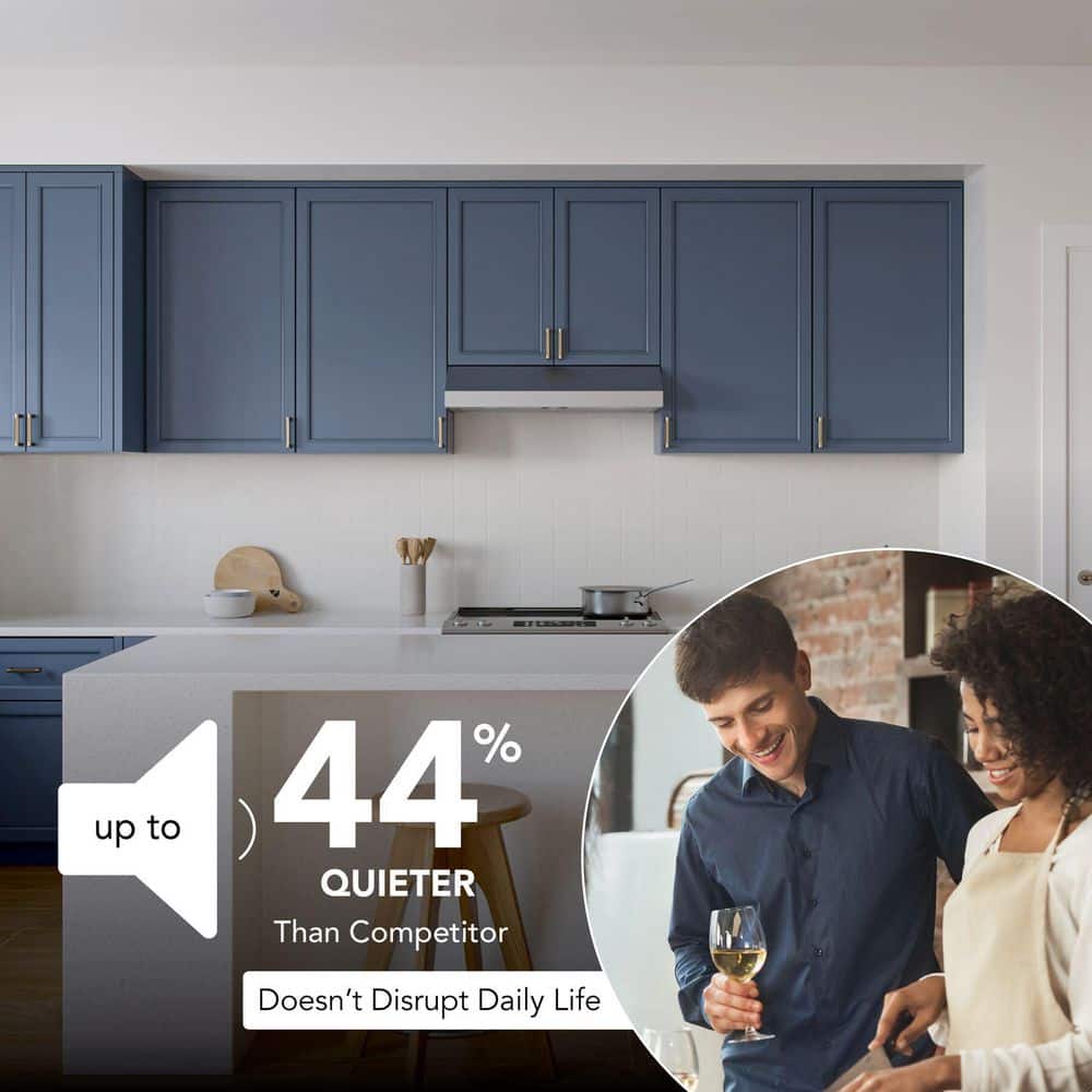 - Broan-NuTone range hood is up to 44% quieter than competition