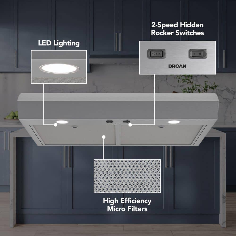 Broan-NuTone Alta 30 in. 350 MAX Blower CFM Convertible Under Cabinet 1.5 Sones Stainless Steel Range Hood