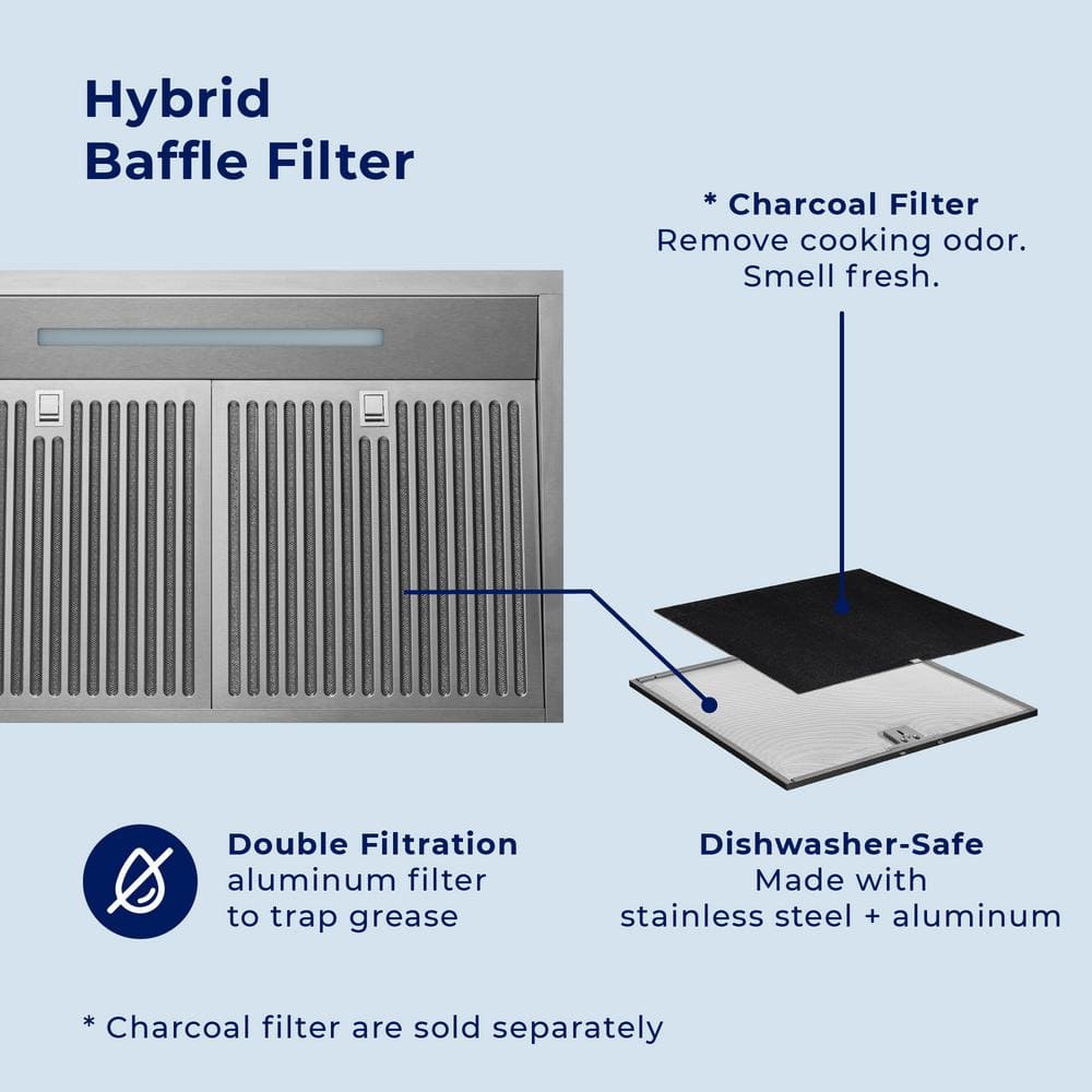 INATECK 42 in. 900 CFM Ducted Under Cabinet Range Hood with 3-Venting Options, Remote, Touch Control LCD in Stainless Steel