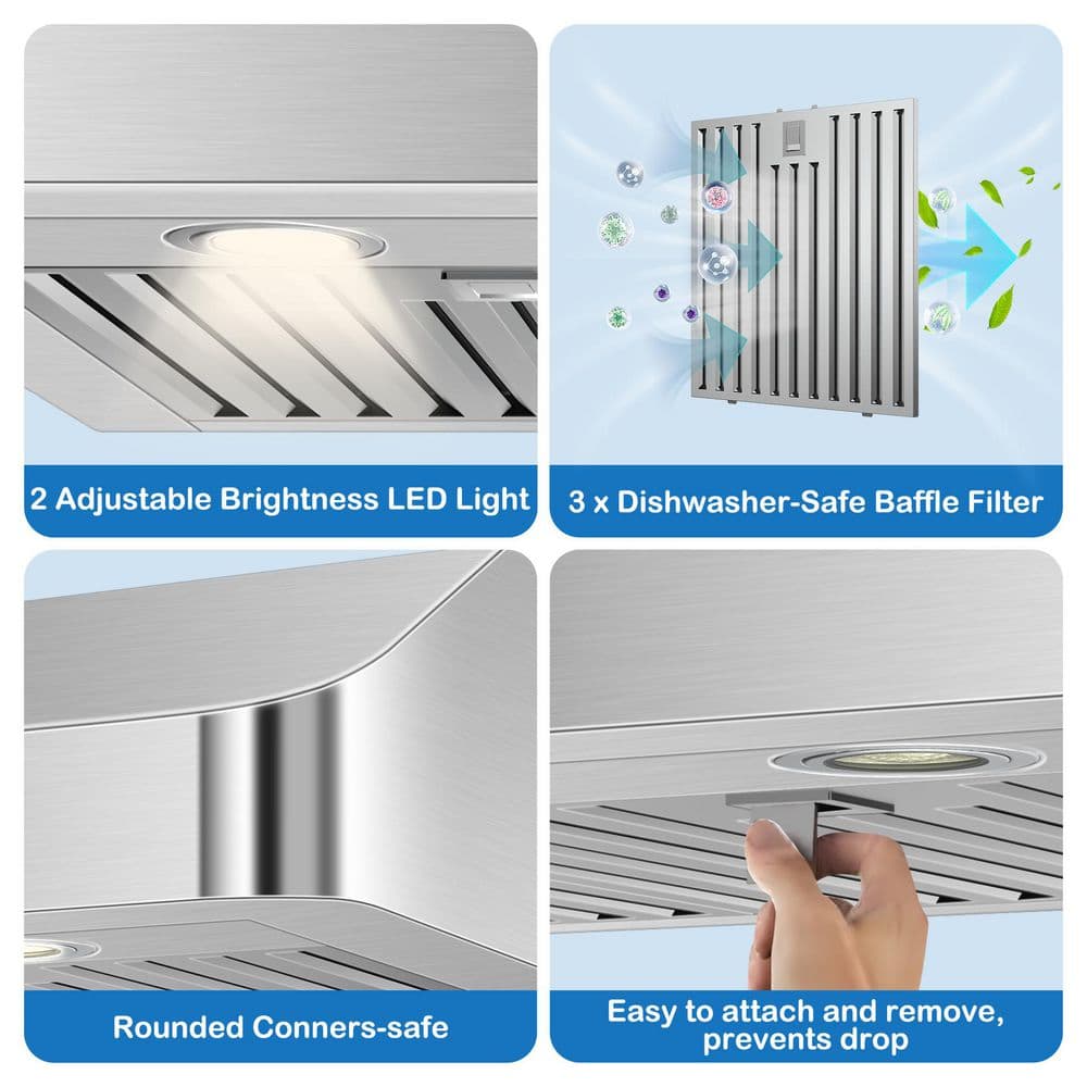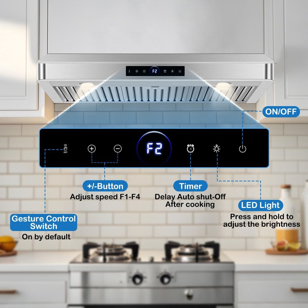 Cooking at home should feel effortless, fresh, and enjoyable. With the RAPSUAR under-cabinet stainless steel range hood, you can say goodbye to smoky air and unwanted odors. Designed with intuitive touch controls and advanced gesture technology, you can adjust fan speeds even when your hands are messy-making your kitchen routine smoother and stress-free.Powerful yet ultra-quiet, this range hood keeps your kitchen clean and your family comfortable. Its 1200 CFM suction clears the air in seconds, while the noise level stays low enough to enjoy conversations, music, or even quiet family moments. With durable stainless steel construction and dishwasher-safe filters, it's built to make your life easier every single day.